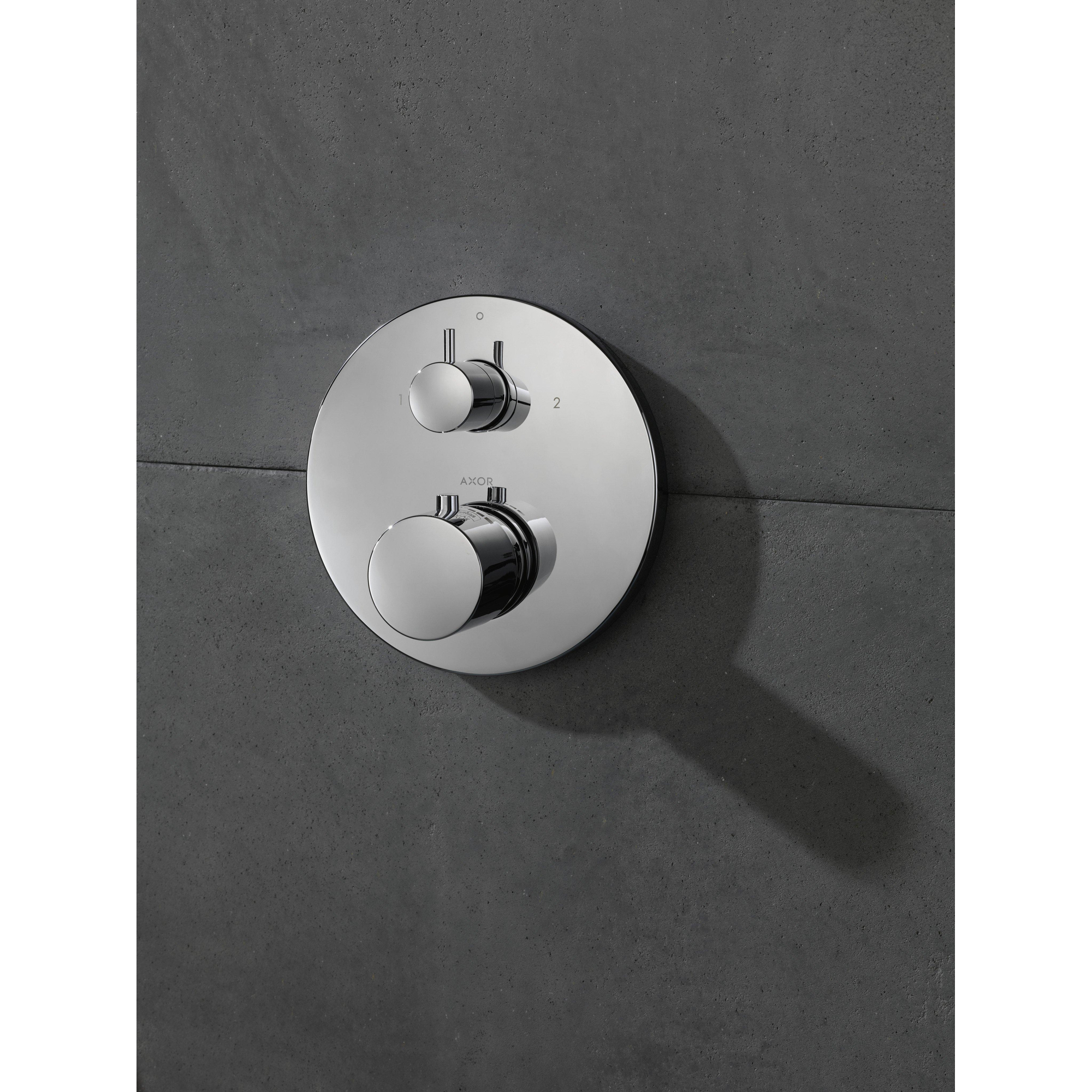 Vous êtes en train de concevoir un espace de douche ou une combinaison bain-douche épurée et confortable et vous voulez que la commande et la régulation de la température soient invisibles mais parfaitement maîtrisées ? Dans ce cas, un thermostatique encastré avec robinet d'arrêt et inverseur est un choix particulièrement judicieux. Ce jeu de finition couleur constitue la partie visible et élégante de votre solution encastrée et est idéal si vous aimez une apparence minimaliste et luxueuse sans faire de concessions sur le confort. Grâce à la technologie thermostatique, vous profitez d'une température de l'eau constante, tandis que l'inverseur intégré vous permet de passer facilement, par exemple, de la douche de tête à la douchette à main ou au bec de baignoire. La finition chromée brillante s'harmonise parfaitement avec les salles de bains modernes, intemporelles et même dignes d'un hôtel, et convient donc aussi bien à la rénovation d'une petite salle de bains en ville qu'à la création complète d'un nouvel espace bien-être de luxe.