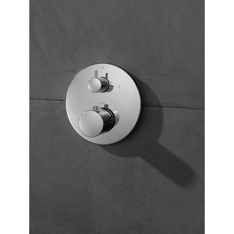 - Convient comme partie de finition pour un thermostatique encastré avec robinet d'arrêt et inverseur intégrés pour deux fonctions (par exemple douche de tête et douchette à main ou bain et douche).