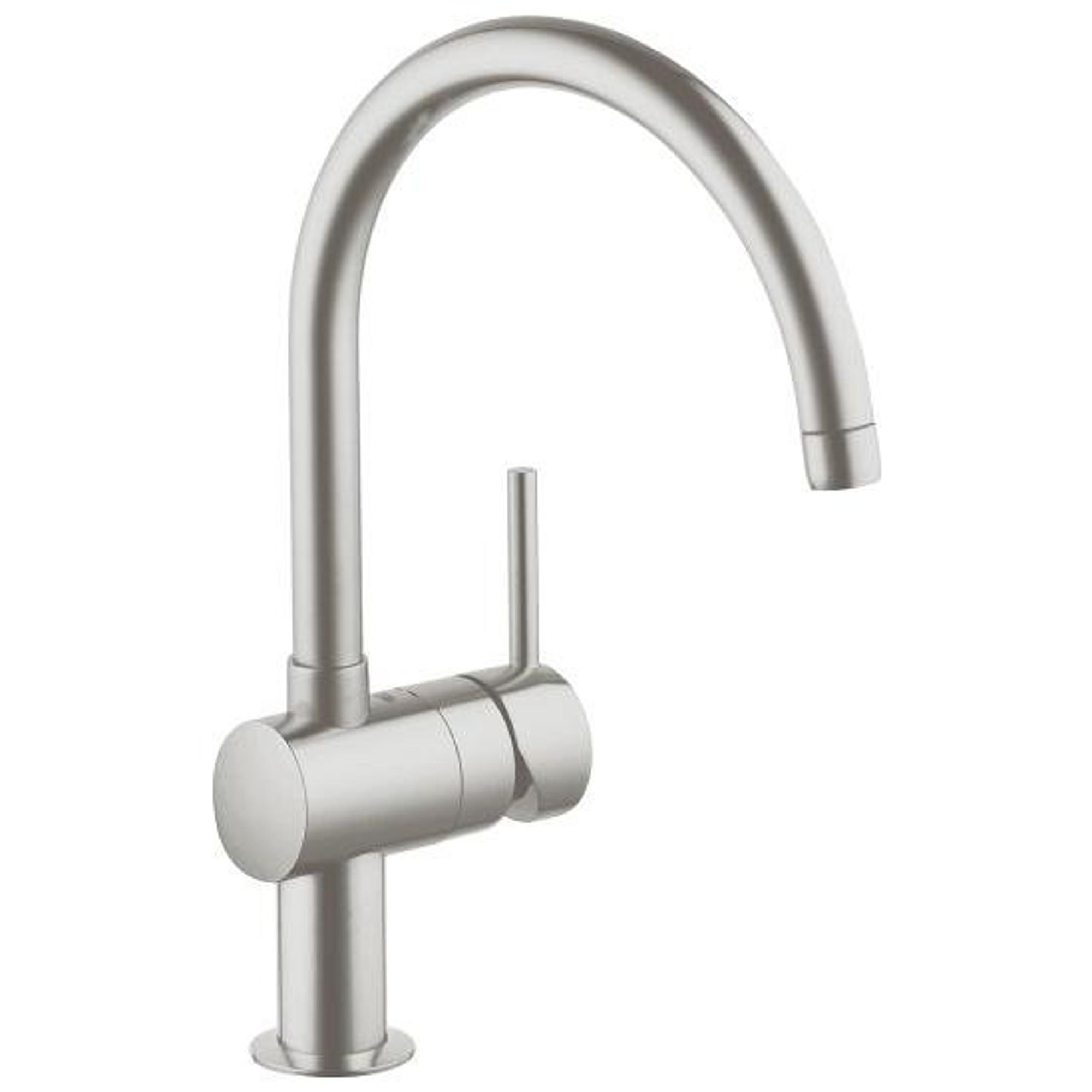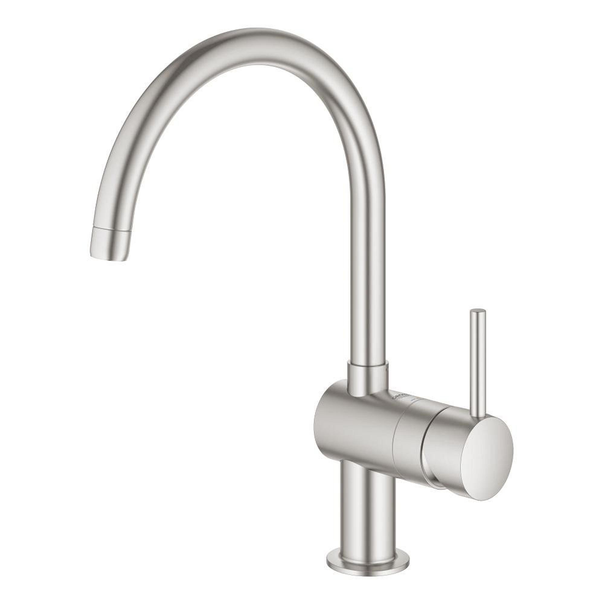 GROHE Minta Mitigeur de cuisine - haut - bec rond pivotant - SuperSteel brossé