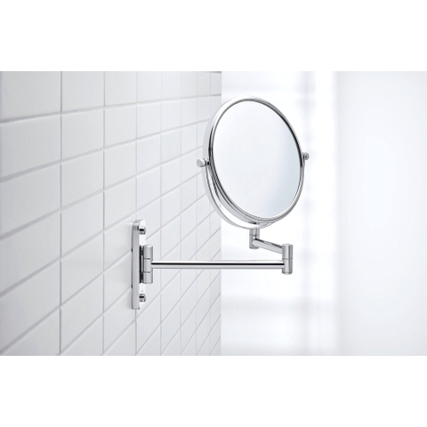 La finition chrome haute brillance confère à ce miroir de rasage une apparence élégante et moderne qui se marie bien avec presque tous les styles de salle de bains, du minimaliste épuré au classique intemporel. Le design rond paraît chaleureux et discret, sans dominer l’ensemble. Comme le miroir fait partie d’une collection bien connue, il s’accorde esthétiquement avec d’autres produits en chrome, tels que les robinets, les ensembles de douche et les accessoires. Vous pouvez ainsi créer un ensemble soigné et cohérent dans votre salle de bains ou vos toilettes avec un simple petit détail.