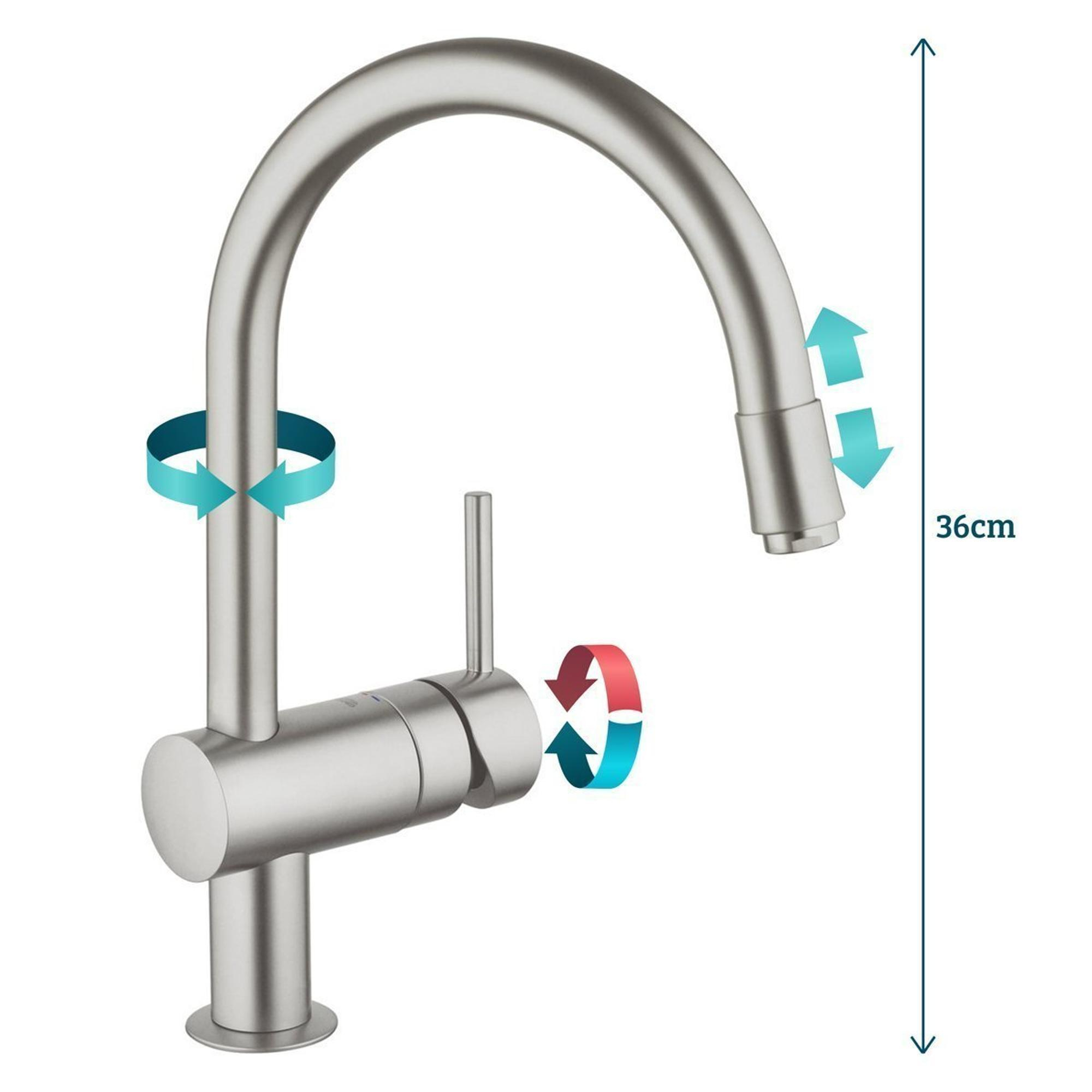 GROHE Minta Mitigeur de cuisine - haut - bec rond orientable/extensible - SuperSteel brossé