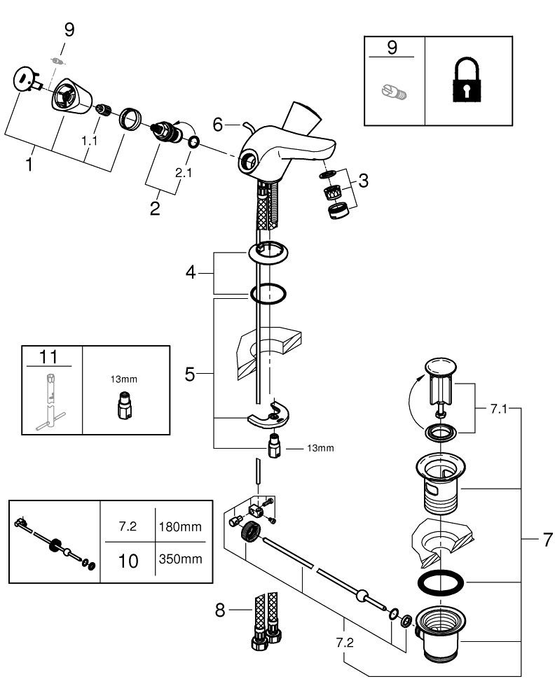 GROHE Costa S Robinet pour lavabo avec bonde et bec coulé chrome