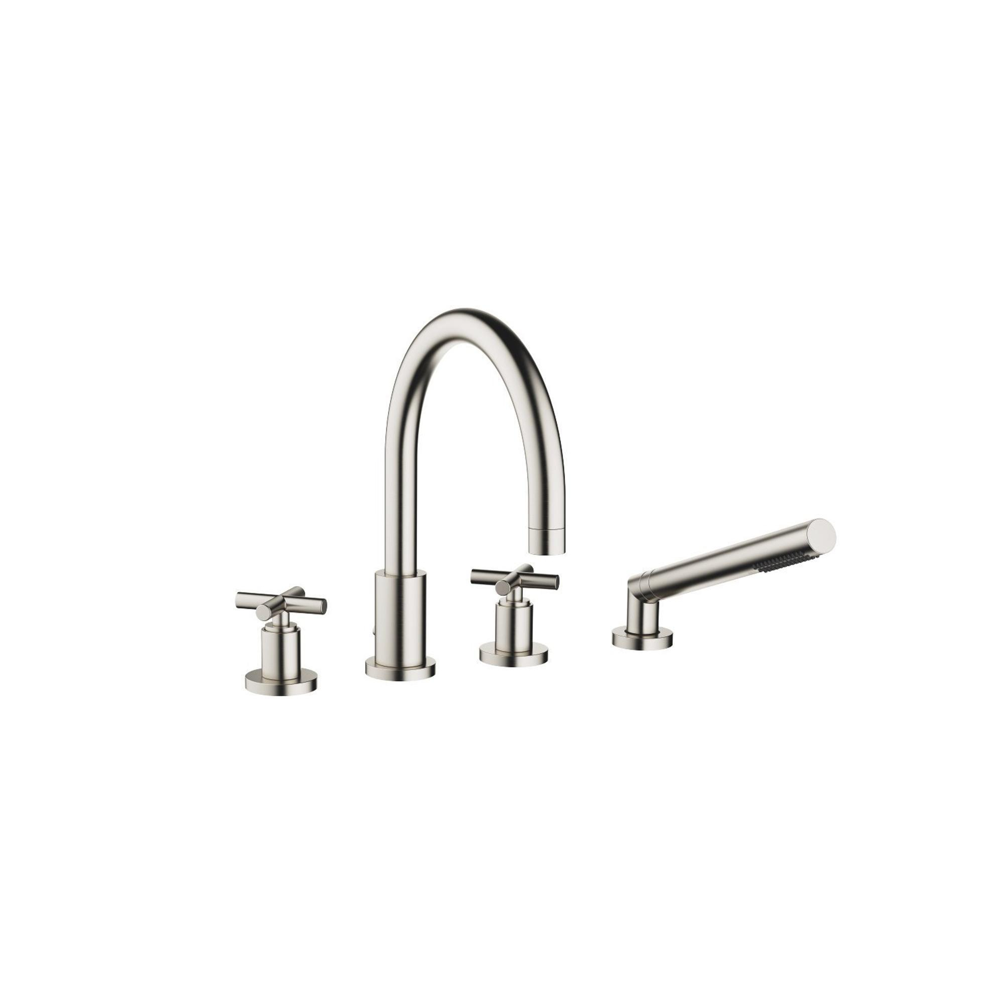 La conception est un exemple type de design de salle de bains intemporel : lignes fines, proportions équilibrées et poignées en croix emblématiques qui donnent immédiatement une impression de qualité. La couleur platine mat est une alternative raffinée au chrome standard ou à l’inox ; elle paraît plus douce, haut de gamme et s’accorde à merveille avec la pierre naturelle claire, le béton ciré ou les tons chauds du bois. Comme le style évoque à la fois le classique et le moderne, vous pouvez combiner ce mitigeur de baignoire sur gorge sans problème avec d’autres marques de design et différents styles de salle de bains. Vous créez ainsi une allure luxueuse uniforme sans que tout doive nécessairement provenir d’une seule et même série. La nuance de couleur de type inox de la gamme de couleurs assure en outre une belle harmonie avec les accessoires et détails en inox.