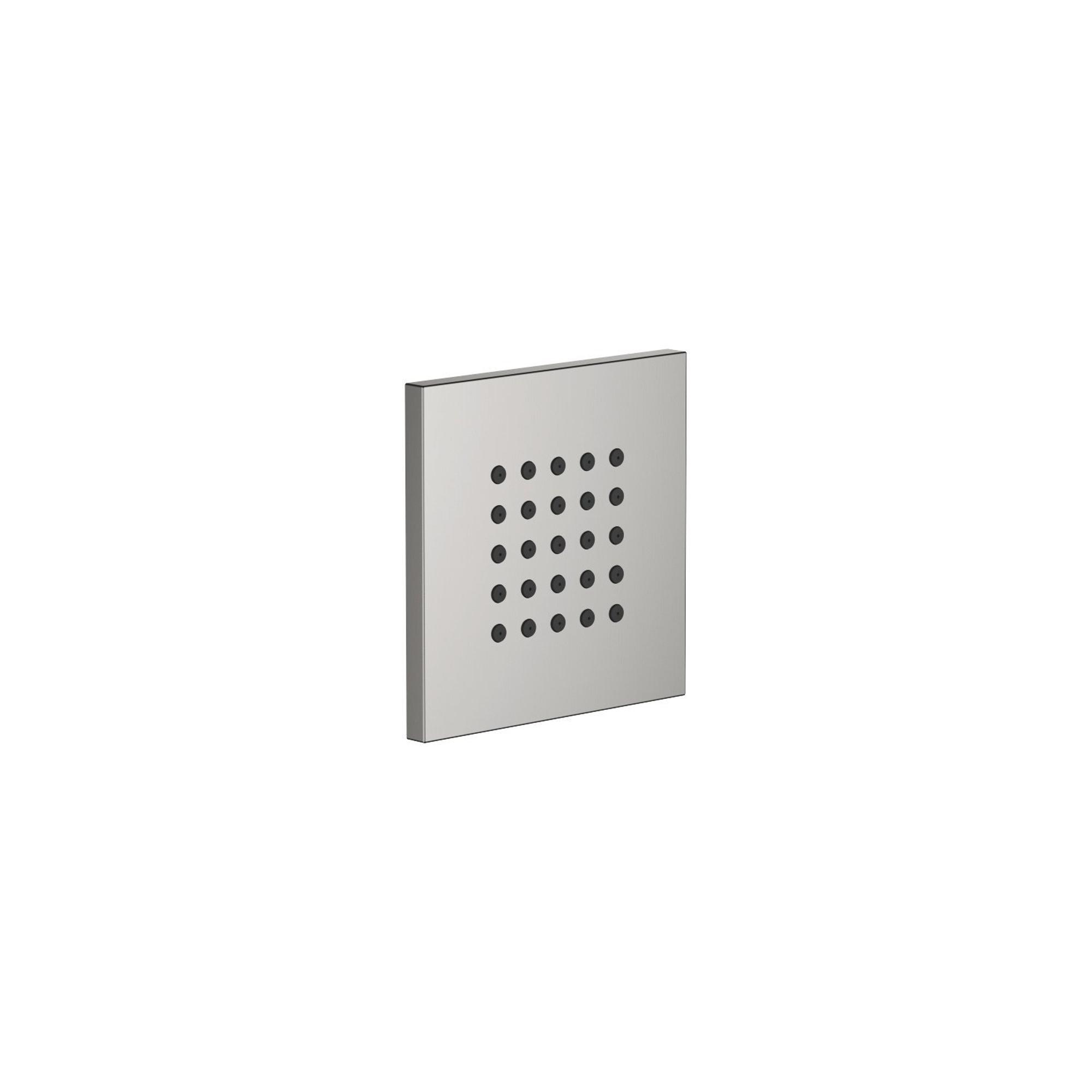 Avec cette élégante douche latérale, vous créez facilement une véritable douche bien-être dans votre propre salle de bains. Grâce à la forme compacte et carrée, cet élément encastré s’intègre parfaitement aussi bien dans une vaste douche à l’italienne que dans une luxueuse cabine de douche, sans donner une impression de désordre. Le design subtil en platine mat s’harmonise parfaitement avec les salles de bains modernes équipées de robinets et d’accessoires haut de gamme en aspect inox ou PVD, mais constitue également un accent chic dans un espace calme et intemporel. Cette douche latérale est idéale lorsque vous souhaitez profiter d’un spray corporel supplémentaire pendant la douche : doux, uniforme et ciblé, pour une sensation agréable et rafraîchissante après une longue journée. Comme il s’agit d’un élément encastré, votre espace de douche reste épuré et minimaliste, tout en vous permettant de profiter d’une expérience de douche digne d’un hôtel de luxe. Surtout pour ceux qui attachent de l’importance aux détails, aux finitions et à la qualité solide, ce produit représente un choix durable.