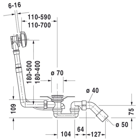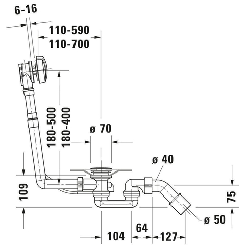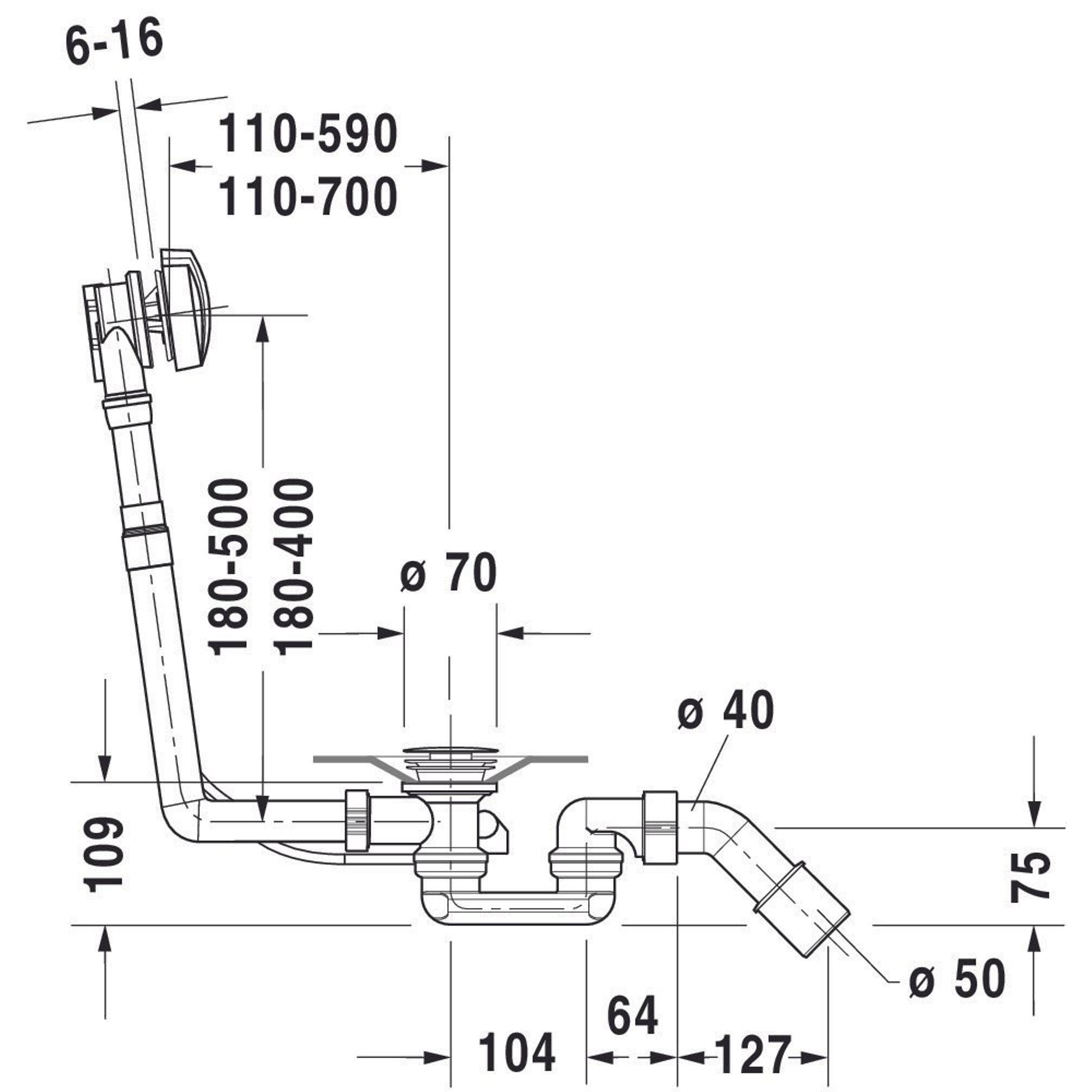 Duravit D Code vidage de bain et combinaison de trop-plein avec clapet pour baignoire 180cm avec vidage central