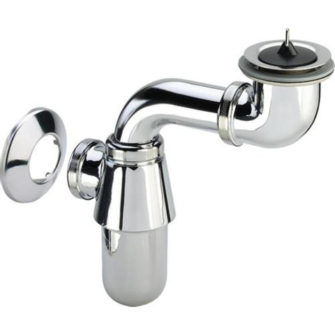 Siphon à godet gain de place ergonomique avec bouchon 5/4 chrome performant