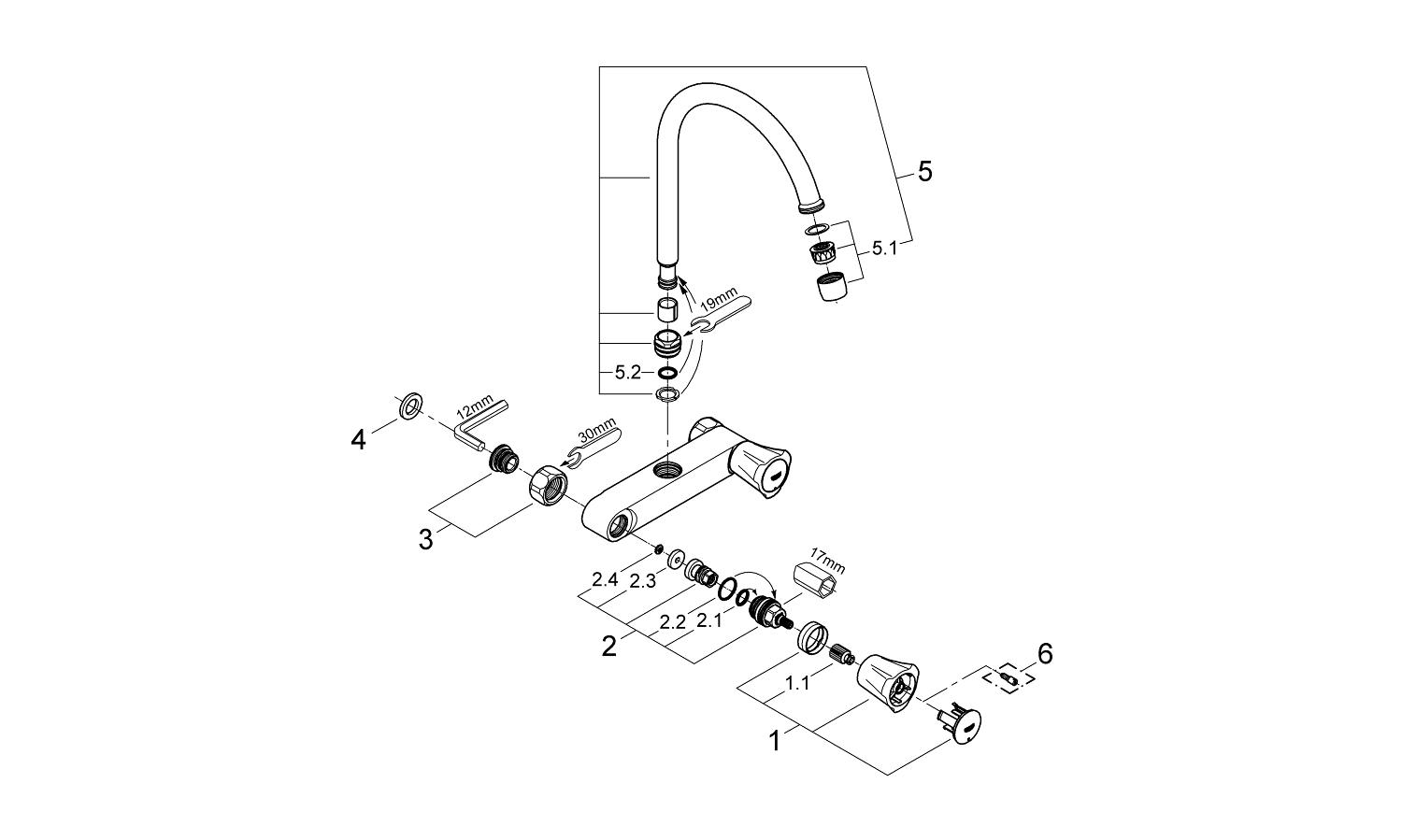 GROHE Costa L Robinet de cuisine - haut - bec haut - encastré - chrome