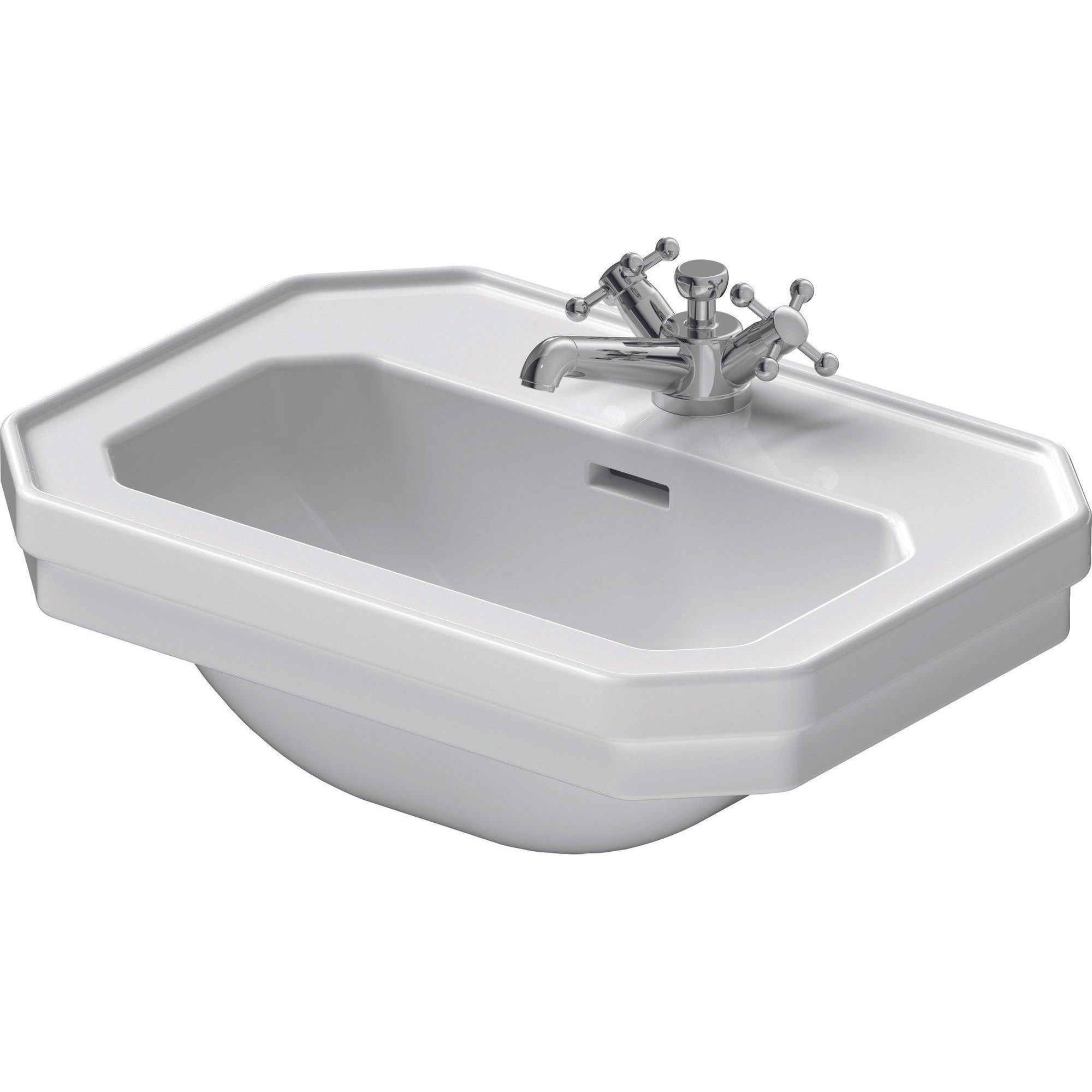 - Avec 1 trou de robinet central, adapté à un robinet de lave-mains de votre choix.
