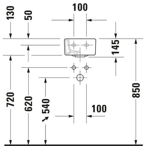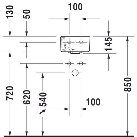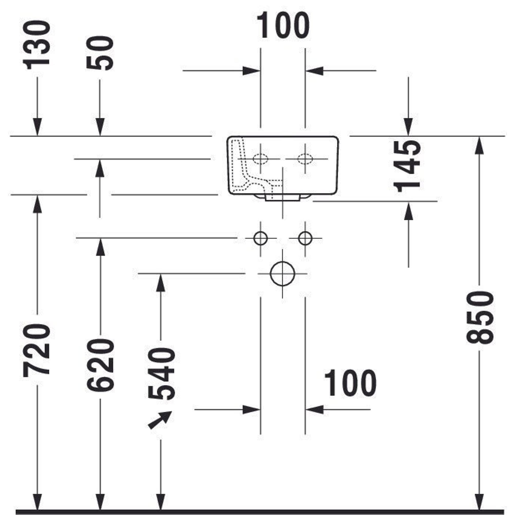 - Fixation murale sur le côté court, ce qui fait avancer le lave-mains de 45 cm dans la pièce