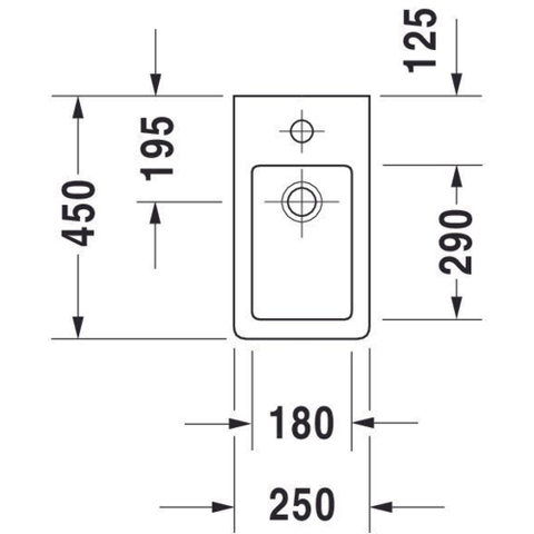 Avec 25x45 cm, ce modèle est idéal pour les petits WC où vous ne voulez pas que le lave-mains dépasse trop ou gêne le passage. Veillez cependant à ce que le lave-mains soit fixé au mur sur le côté court et s’avance ainsi de 45 cm dans la pièce ; parfait si vous souhaitez exploiter la longueur de l’espace tout en conservant une profondeur suffisante dans la cuve. Le design rectangulaire crée une ligne épurée et aérienne le long du mur, ce qui donne à vos toilettes un aspect visuellement plus calme. Grâce au trou de robinet unique à droite, vous pouvez facilement installer un petit robinet de lave-mains et conserver suffisamment d’espace pour vous laver les mains confortablement.