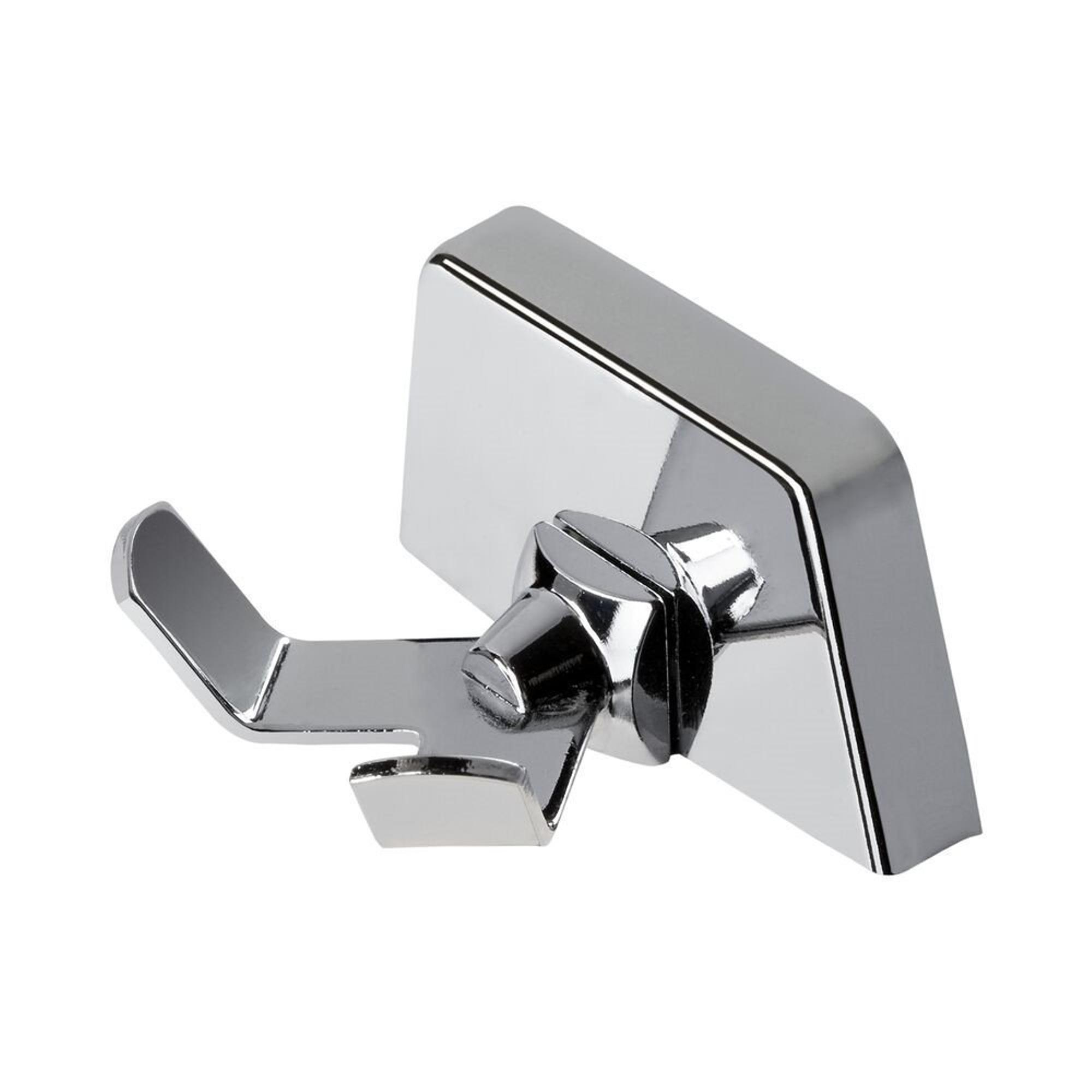 La finition chromée haute brillance confère à ce crochet double une apparence élégante, presque semblable à un bijou, qui se marie immédiatement avec les autres accessoires de salle de bains et robinets en chrome. Grâce à son design épuré et classique, il ne perturbe jamais l’harmonie de la pièce, mais constitue au contraire une base discrète et soignée. La rosace de recouvrement en forme de trapèze apporte une touche ludique, tandis que les vis dissimulées donnent à l’ensemble un aspect particulièrement net et soigné. Vous profitez ainsi d’un accessoire non seulement fonctionnel, mais qui contribue également à un mur de salle de bains élégant et bien ordonné.