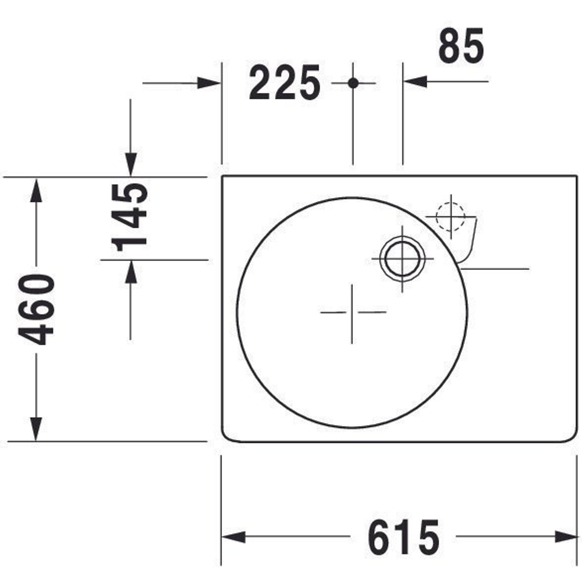 - Lavabo rectangulaire spacieux de 61,5 x 46 cm avec cuve confortable placée à gauche.