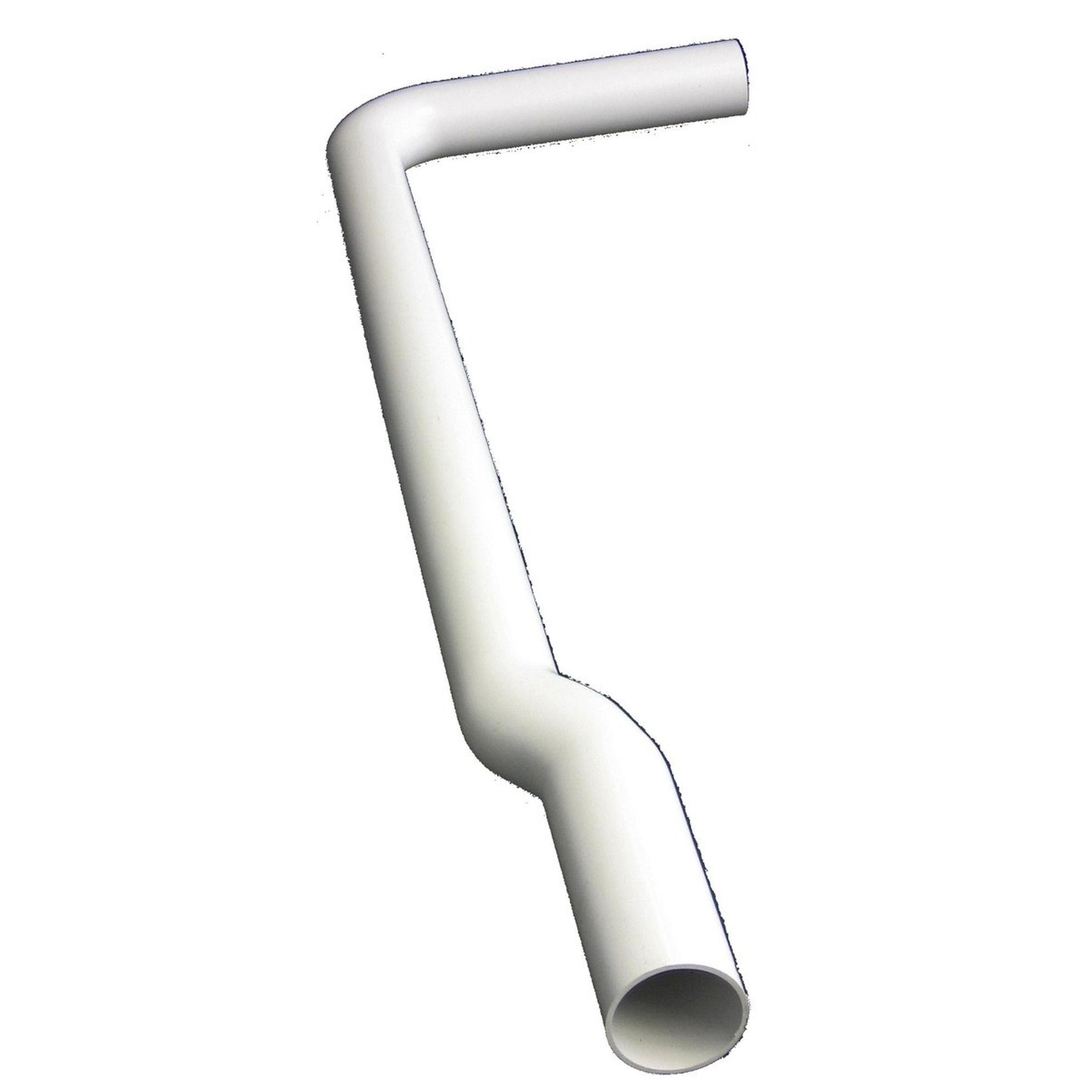 La chute est conçue avec un angle de coude de 90 degrés et un diamètre extérieur du tuyau de 50 mm côté réservoir, ce qui assure une connexion fluide et étanche. Grâce aux dimensions standard de 770 x 220 mm, ce tuyau s'intègre sans effort dans la plupart des installations sanitaires. L'utilisation du plastique rend le produit léger et facile à manipuler lors de l'installation, tout en offrant une solidité suffisante pour une utilisation durable. Cela vous fait gagner du temps et des efforts lors de la pose ou du remplacement de l'évacuation.