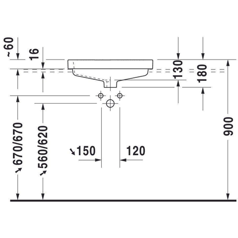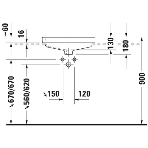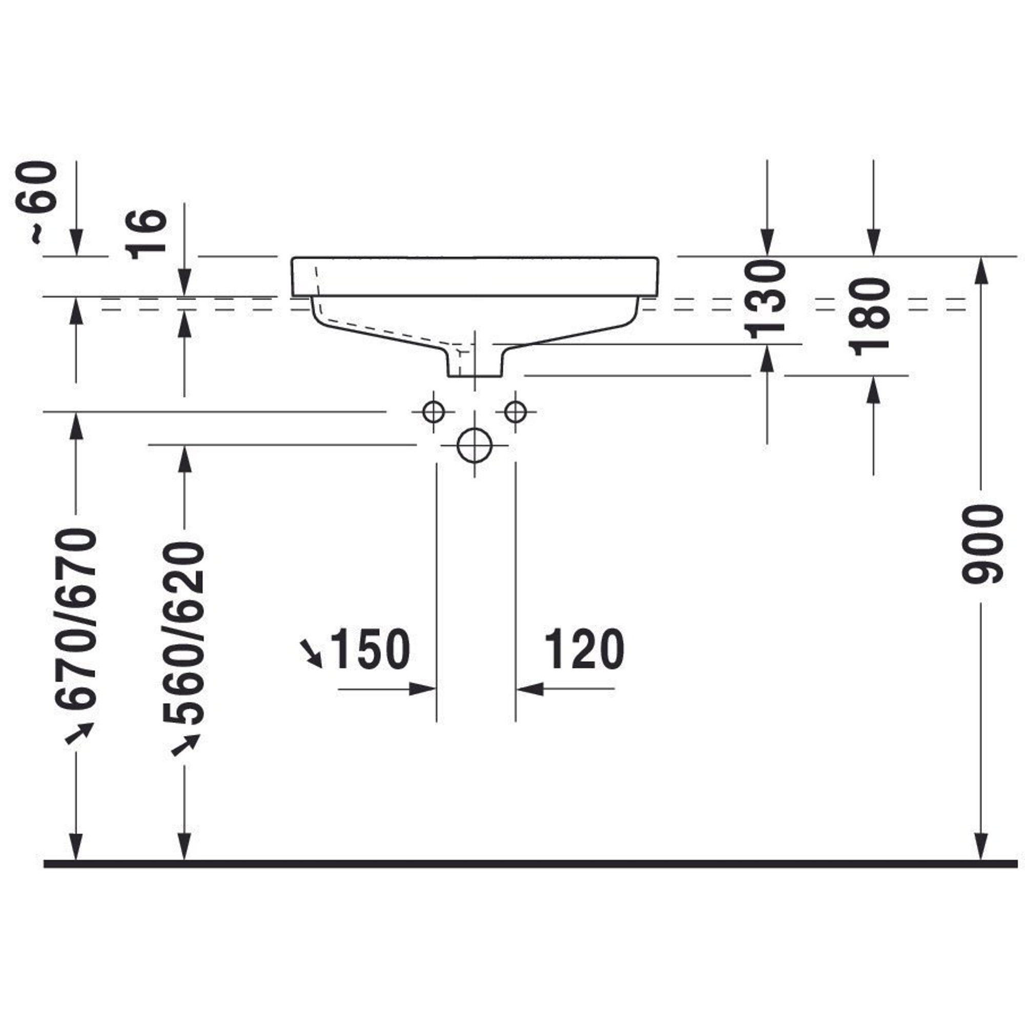 Duravit Vero lavabo encastré 55x46,5cm avec trou de robinetterie et trop-plein blanc
