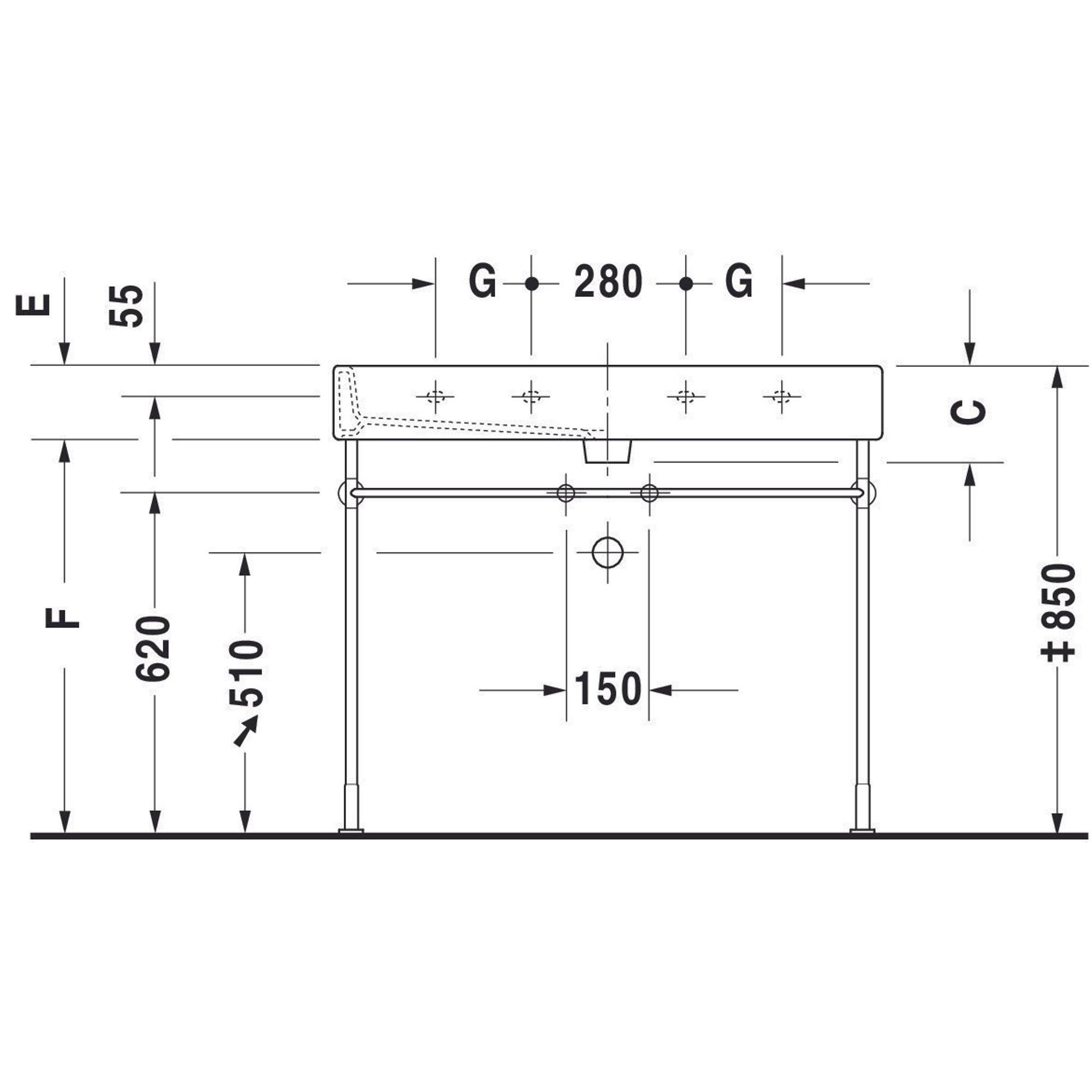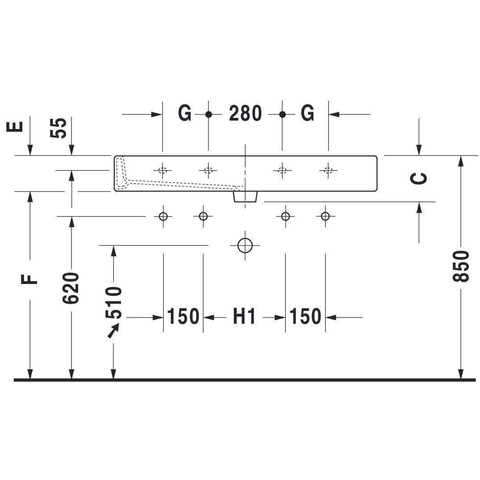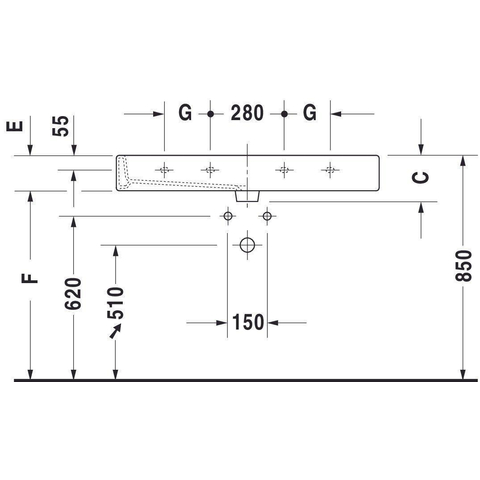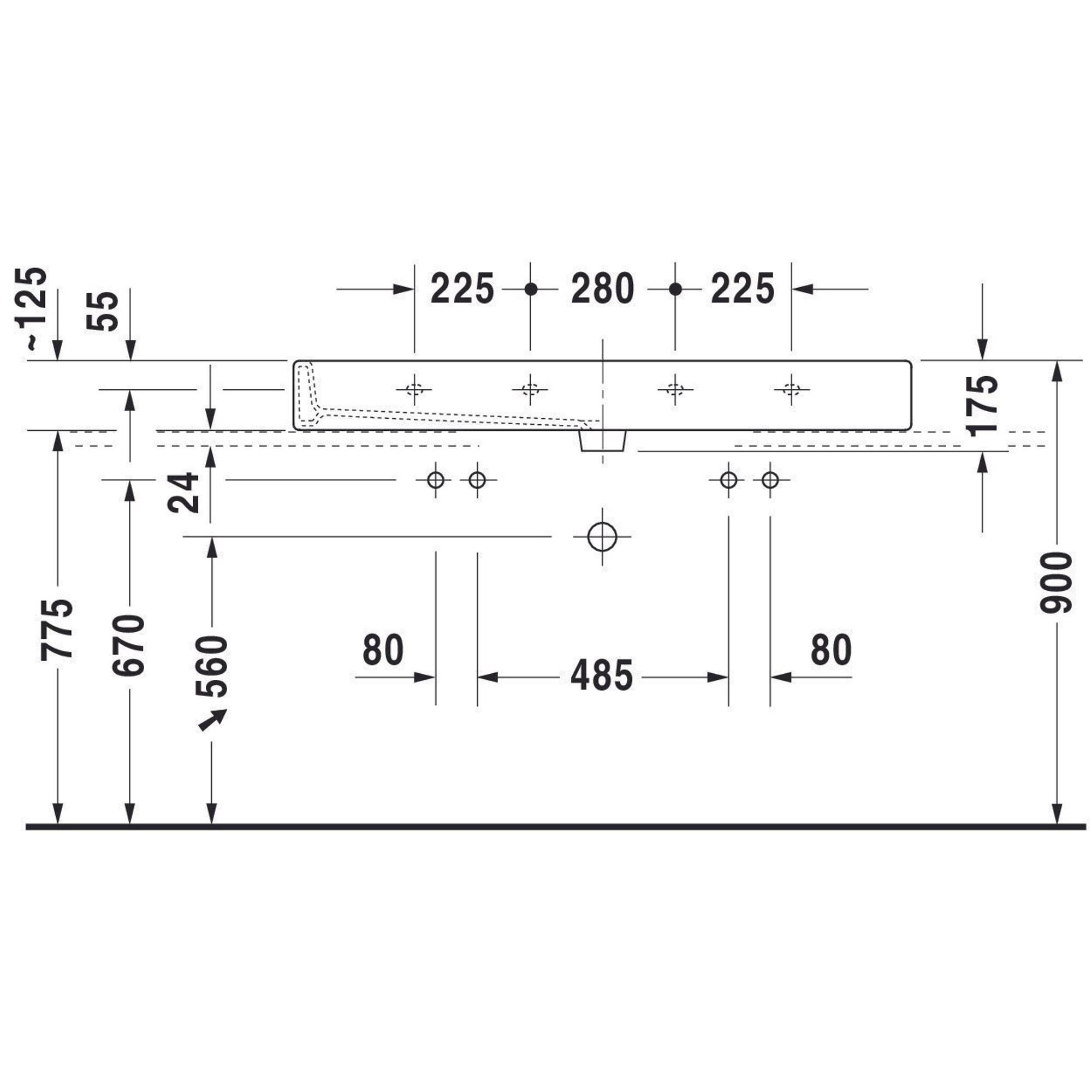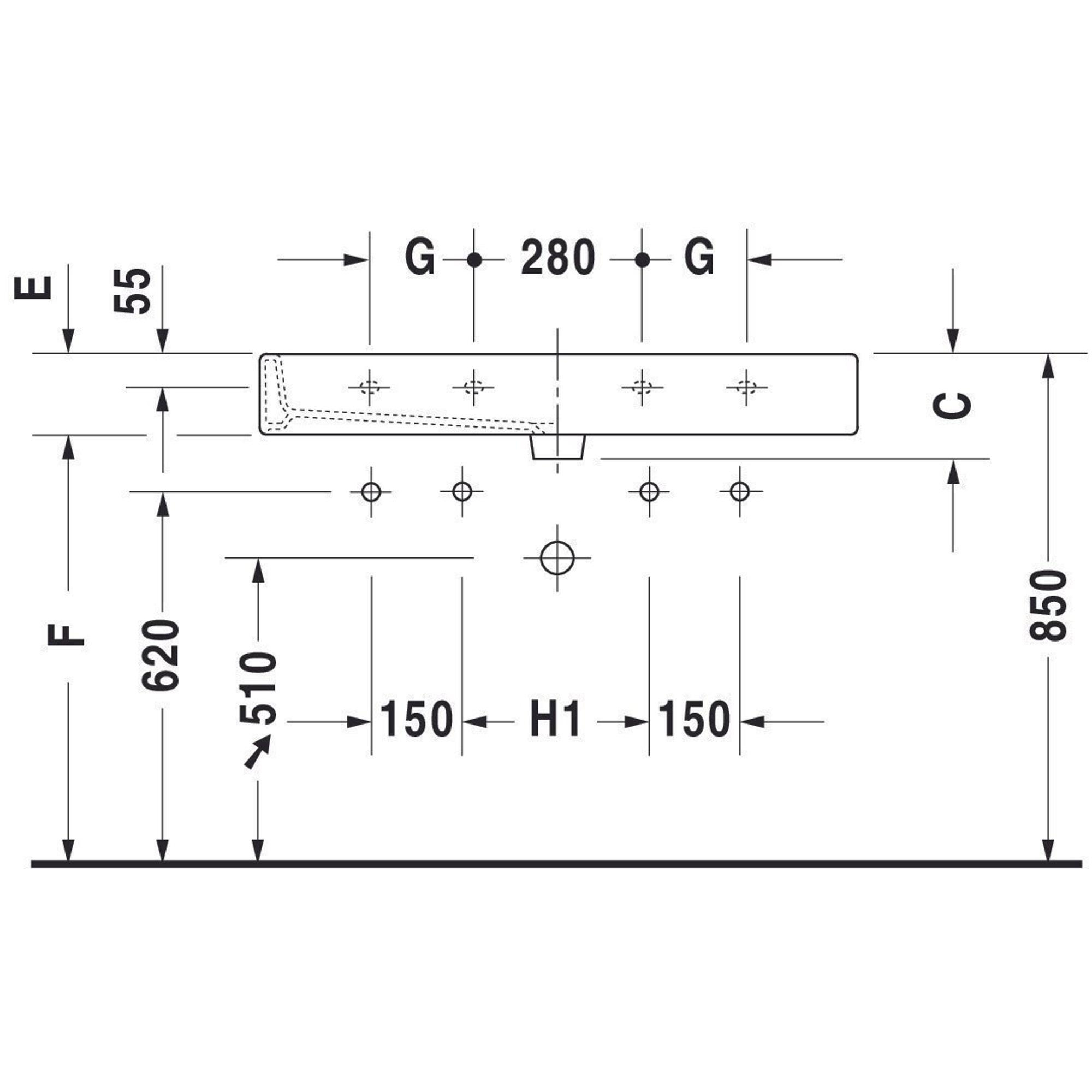 - Grand lavabo de 120x47 cm avec deux trous de robinet, idéal pour une utilisation par deux personnes en même temps.