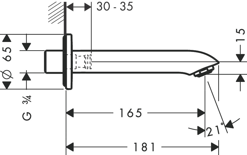 Hansgrohe Metris Bec de baignoire 3/4\"x16.5cm chrome"