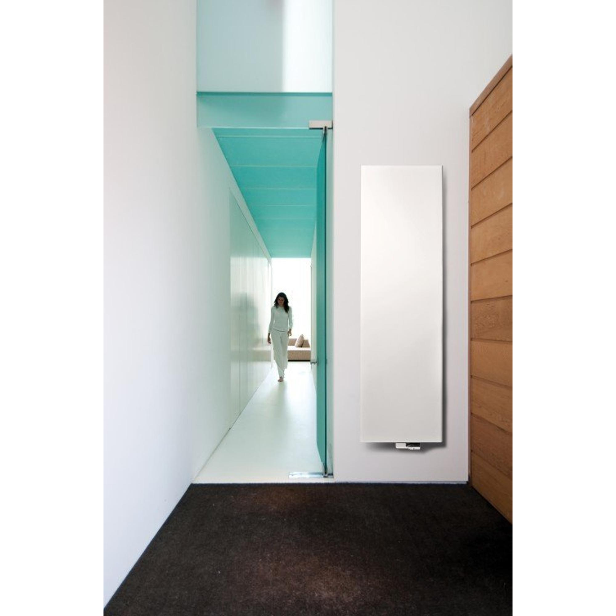 - Radiateur design vertical à panneau simple, idéal pour les murs étroits et les salles de bains modernes.