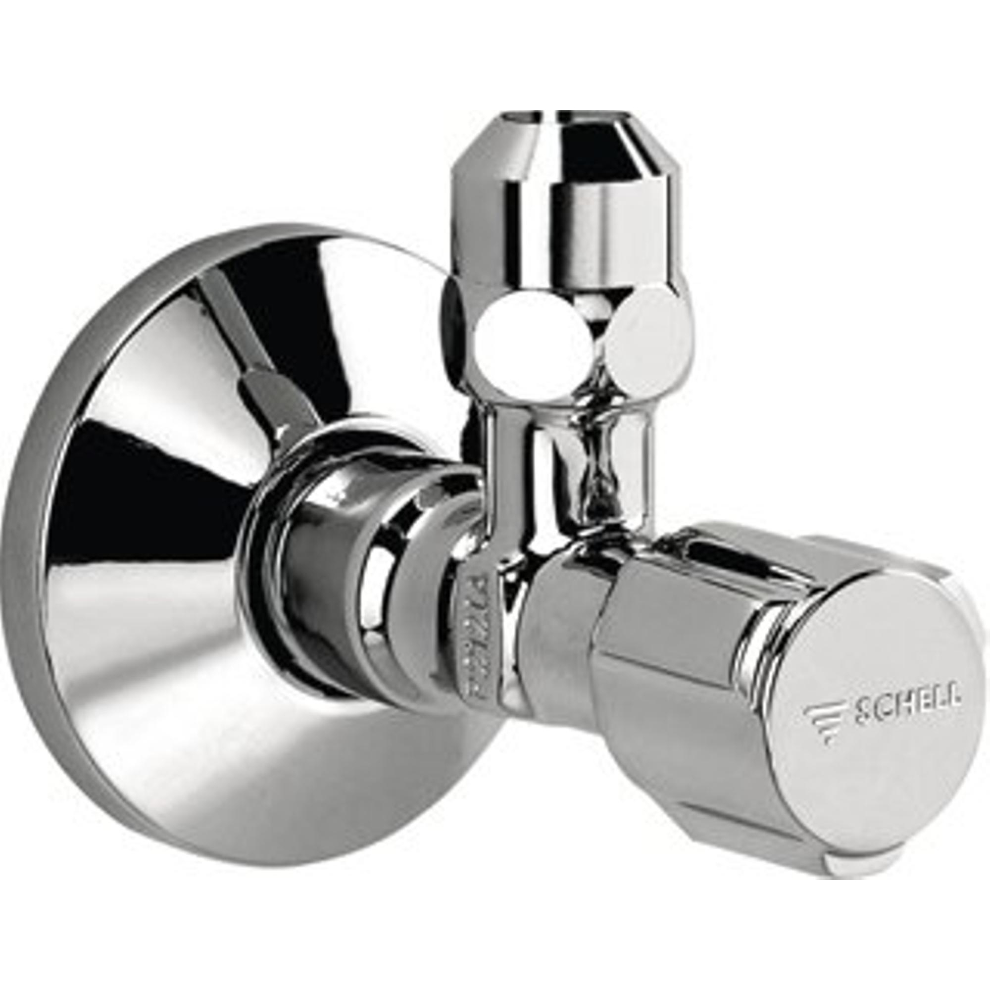 Fonctionnement fiable et contrôle de l'eau avec le Schell Comfort robinet d'arrêt d'angle inclus rosace inclus bouton 1/2x10mm chrome
