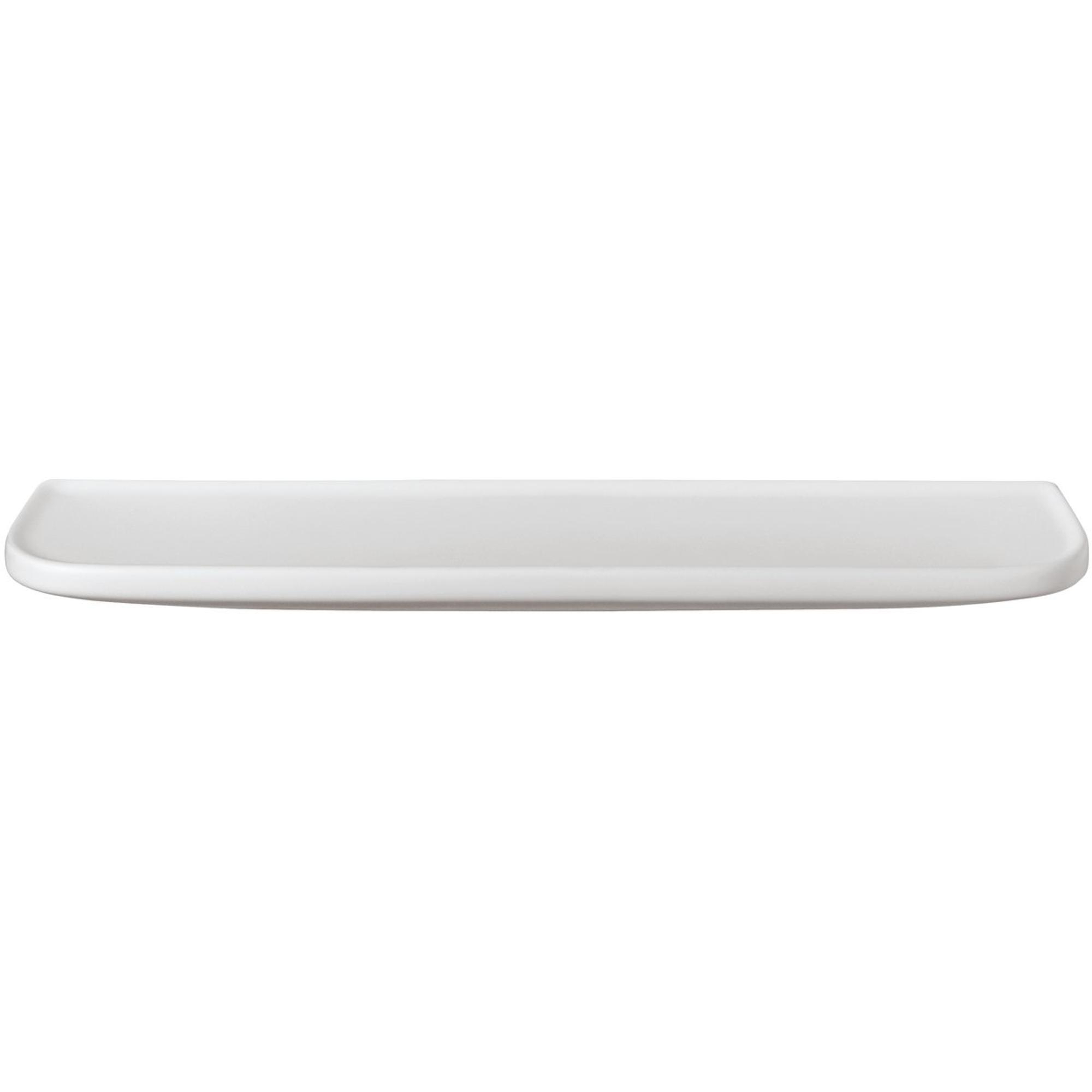 - Tablette en céramique au design rectangulaire moderne, adaptée aux salles de bains contemporaines.