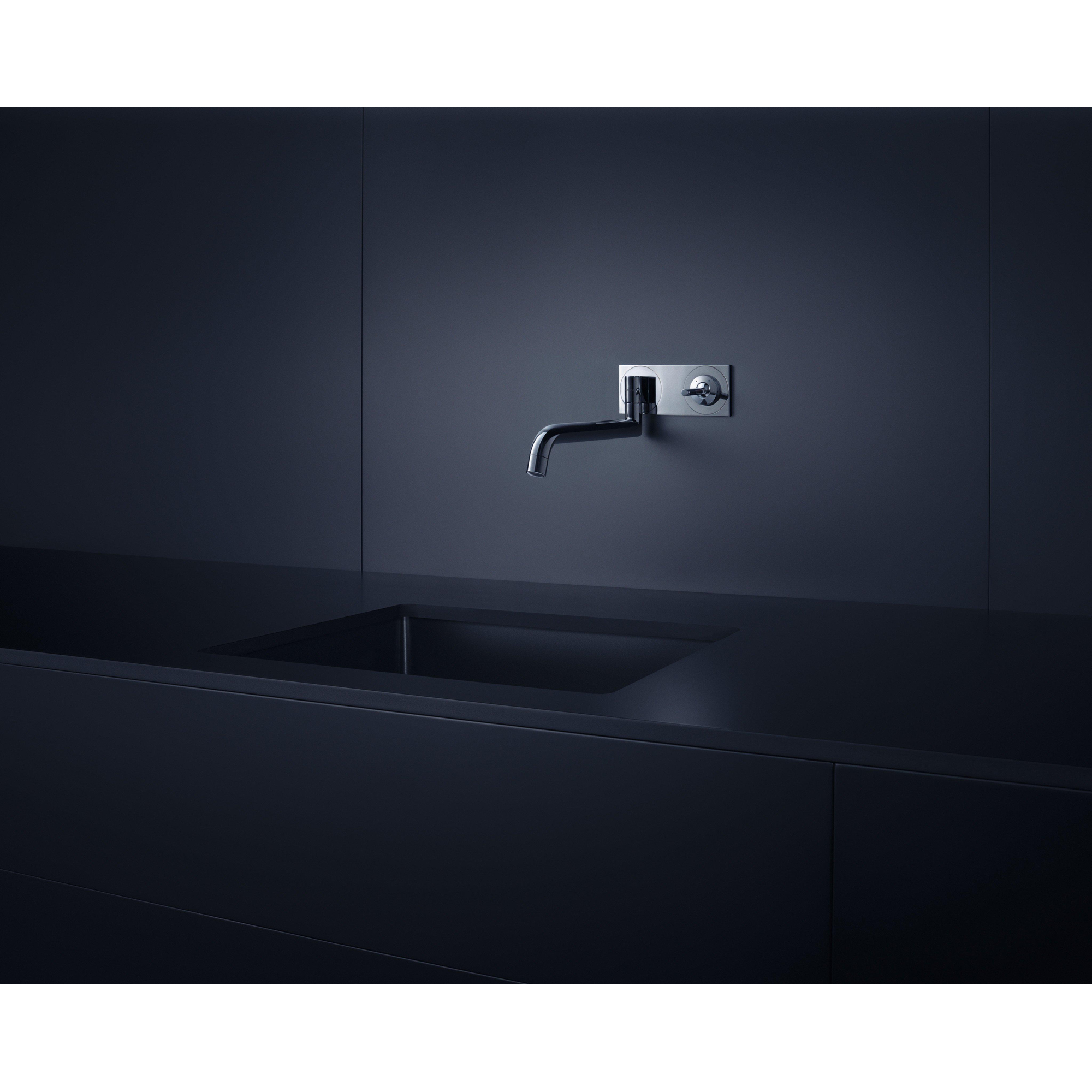 Comme il s’agit ici d’un mitigeur de cuisine encastré, la technique est discrètement dissimulée dans le mur et vous ne voyez à l’extérieur que le bec élancé et la commande. Cela confère à votre cuisine une allure architecturale et épurée et permet de garder votre plan de travail libre de raccordements gênants ou de flexibles inesthétiques. Cette configuration est idéale si vous souhaitez un plan de travail sobre avec peu d’interruptions, par exemple pour un îlot de cuisson ou une longue zone de travail contre le mur. De plus, vous pouvez positionner la poignée de manière ergonomique, afin de toujours accéder confortablement à la commande, même lorsque vos mains sont mouillées ou grasses. Vous combinez ainsi un design de haut niveau avec une grande praticité au quotidien.