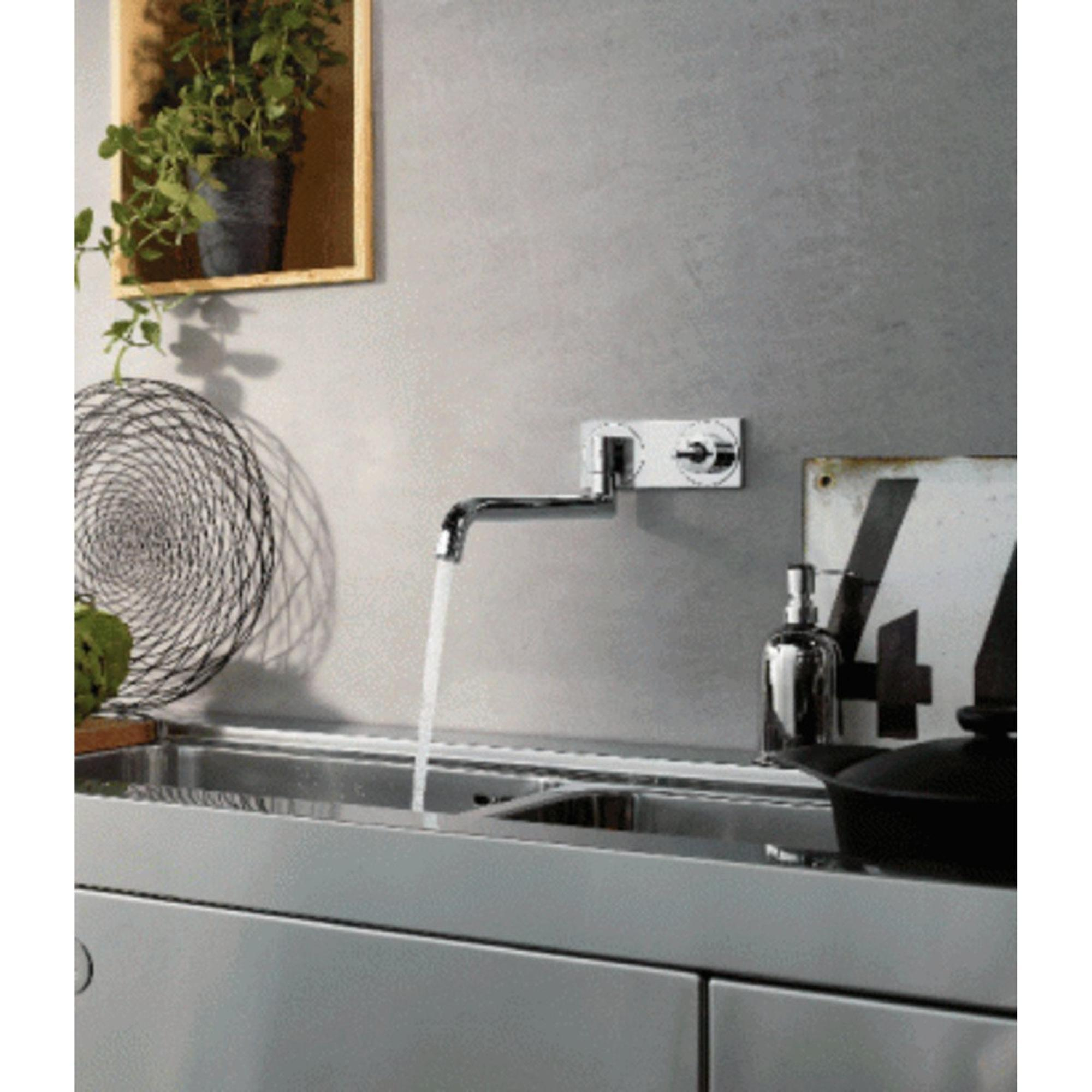 - Mitigeur de cuisine encastré pour montage mural : assurez un plan de travail épuré et dégagé, sans conduites visibles.