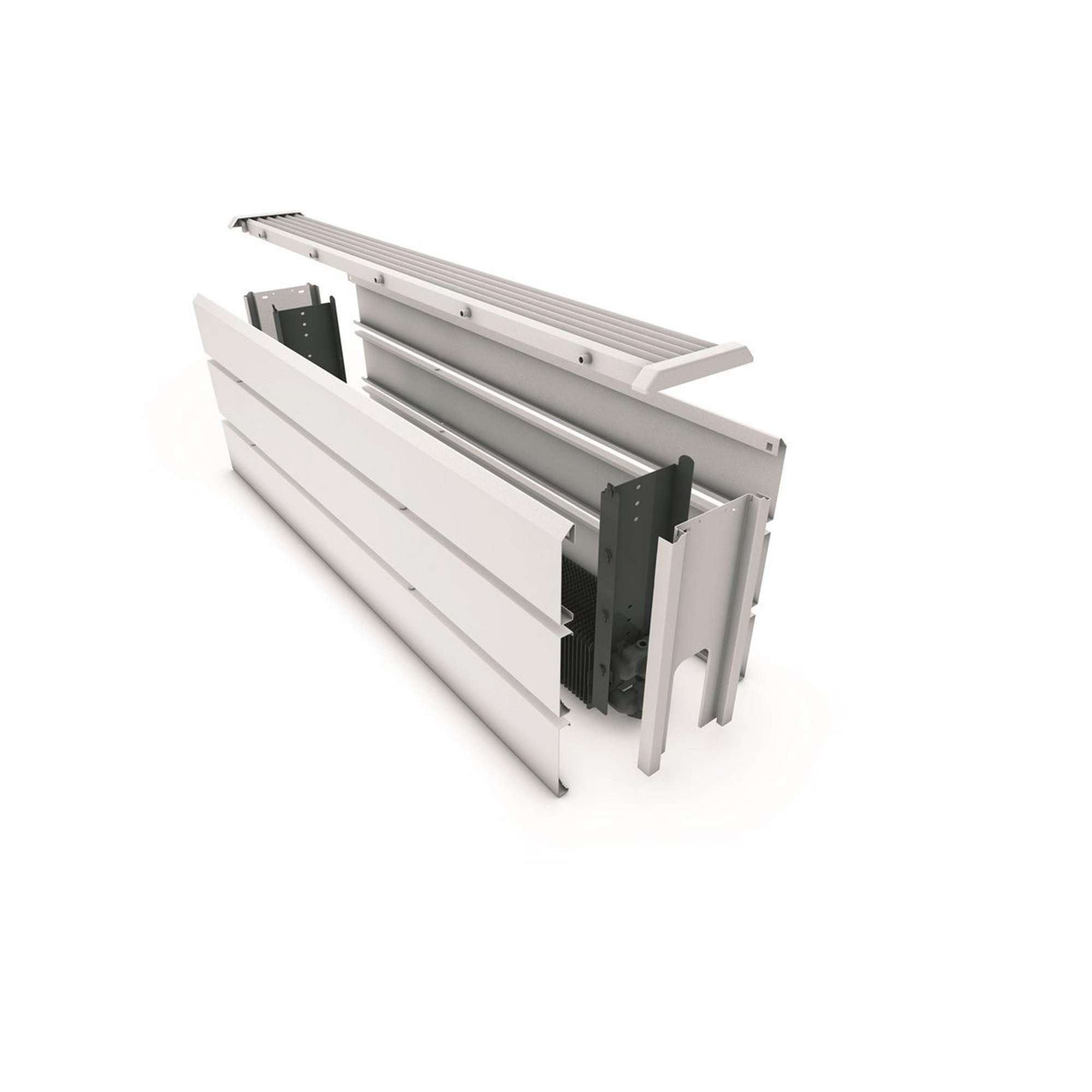 Alors que les radiateurs traditionnels ont du mal à compenser la descente d’air froid au niveau de grandes surfaces vitrées, ce convecteur autoportant est justement conçu pour cela. Vous le placez facilement devant la fenêtre, sans endommager le vitrage ni devoir intervenir dans la façade. Le flux d’air le long du vitrage évite que vous ne ressentiez un courant d’air froid le long des jambes et assure une température agréable jusque dans chaque recoin de la pièce. Grâce à la configuration horizontale de 20x80 cm, il forme une ligne basse et épurée qui suit élégamment la fenêtre ou la façade. Une version avec Twin Power est disponible en option pour une compensation encore plus rapide de la descente d’air froid, ce qui est particulièrement appréciable dans les pièces présentant de grandes surfaces vitrées orientées au nord ou dans les situations mal isolées.