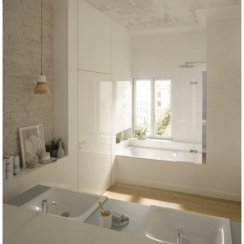 Le trop-plein est positionné à l’arrière, ce qui assure une apparence nette et symétrique ainsi qu’une position allongée confortable, sans éléments gênants. La baignoire est conçue comme baignoire à encastrer, ce qui vous permet de carreler entièrement le pourtour selon votre style ou de le finir avec des panneaux. Elle est livrée de série sans pieds et sans vidage, afin que vous puissiez choisir avec votre installateur exactement le kit et la finition qui conviennent à votre situation et à vos exigences de confort. Le perçage optionnel pour trou de robinet et pour poignée vous offre en plus la liberté d’adapter la baignoire à votre configuration de bain idéale et à votre sécurité.