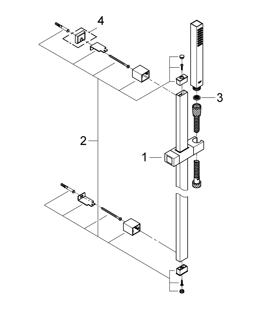 GROHE Euphoria Cube Ensemble barre de douche - 60cm - douchette à main barre - 1 type de jet - flexible de douche en métal - chromé