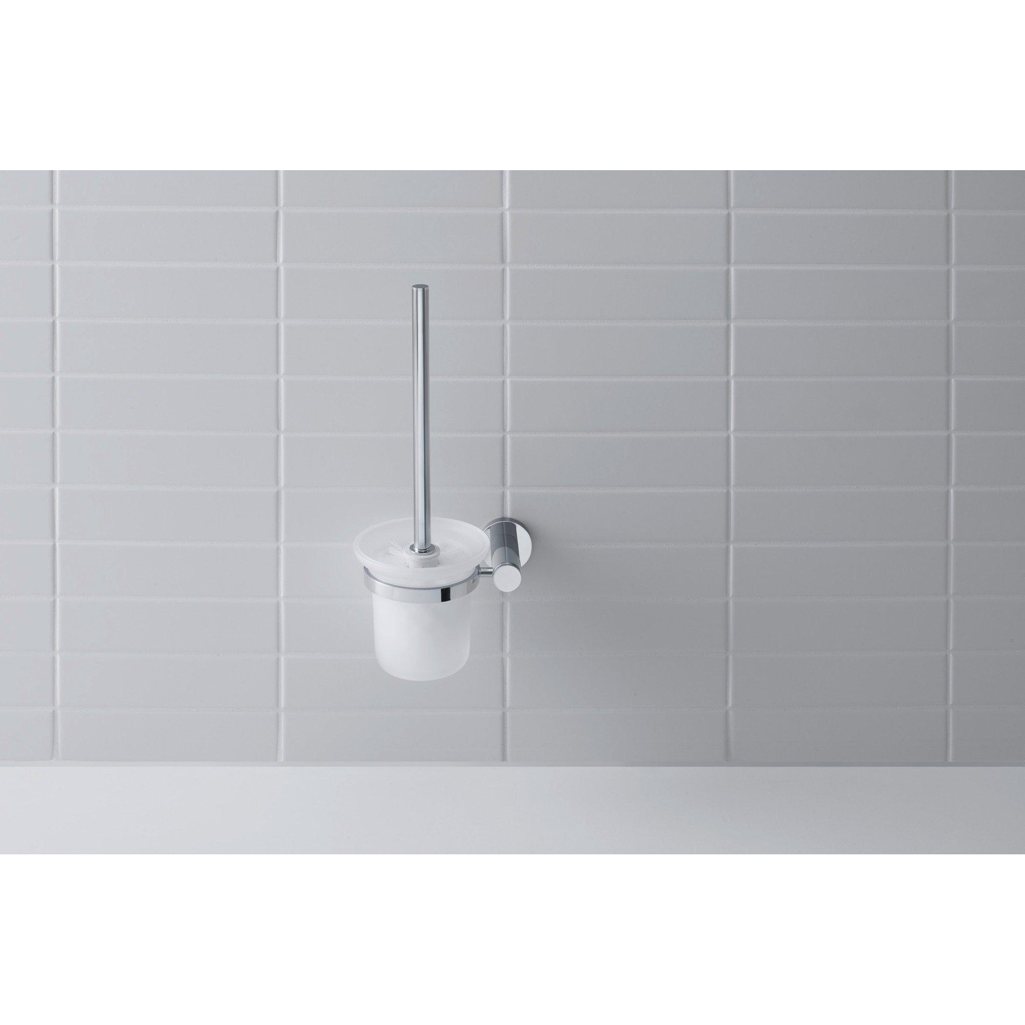 Avec ce porte-balai WC élégant, vous ajoutez non seulement un accessoire pratique à vos toilettes, mais aussi un détail soigné qui rehausse visuellement l’ensemble de l’espace. Ce modèle est idéal si vous accordez de l’importance à une apparence nette et hygiénique et que vous préférez ne pas avoir de balai posé librement sur le sol. Grâce au montage mural, le sol reste dégagé, ce qui est particulièrement pratique dans les toilettes plus petites ou les salles de bains compactes. La combinaison de chrome, de verre mat et d’un design épuré s’accorde parfaitement avec les styles d’intérieur modernes, intemporels et même naturels. Si vous recherchez une solution de qualité, durable, facile à nettoyer et qui s’harmonise parfaitement avec d’autres accessoires ou robinetteries en chrome, il s’agit alors d’un choix très judicieux.