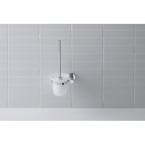 Le support est réalisé en chrome brillant avec un insert en verre mat, créant ainsi un subtil mélange de luxe et de douceur. La rosace ronde et la forme simple et épurée s’accordent parfaitement avec les lignes douces pour lesquelles la série D-Code est réputée. Cet accessoire se combine donc aisément avec différents WC, lave-mains et robinetteries en chrome. Les accents blancs de la brosse offrent une apparence fraîche et hygiénique, de sorte que vos toilettes ont toujours l’air soigné. Vous faites ainsi une grande différence dans le look global de vos toilettes ou de votre salle de bains avec un détail relativement petit.