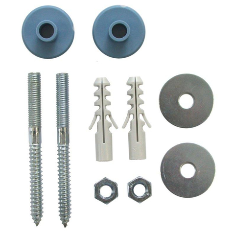 Cet ensemble de fixation convient aussi bien au professionnel qu’au bricoleur expérimenté. La combinaison de la cheville et de la tige filetée rend le montage simple : percer, placer la cheville, visser la tige filetée et fixer solidement le lavabo. Comme la dimension (M10 x 110 mm) est une norme très courante pour les lavabos, cet ensemble correspond dans la plupart des cas parfaitement aux trous de fixation de votre lavabo. Cela vous fait gagner du temps dans la recherche des bons matériaux. Vous pouvez ainsi travailler efficacement et passer rapidement à la finition de votre salle de bains. Attention : les capuchons de finition ne sont pas fournis, afin que vous puissiez choisir vous-même la finition qui s’accorde le mieux avec votre style et votre lavabo.Caractéristiques :