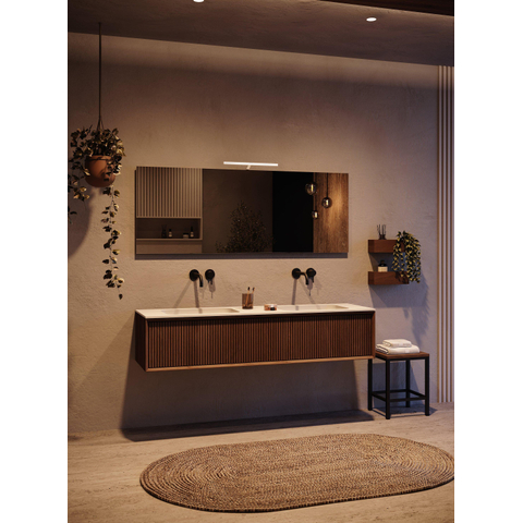 La Looox B Line lampe de salle de bains dégage une élégance indéniable. Le design élancé et la finition chromée confèrent une apparence luxueuse à toute salle de bains. Qu'il s'agisse d'un aménagement moderne ou classique, cette lampe s'intègre parfaitement à différents styles. L'éclairage doux mais lumineux crée une atmosphère agréable et souligne l'élégance de la pièce.