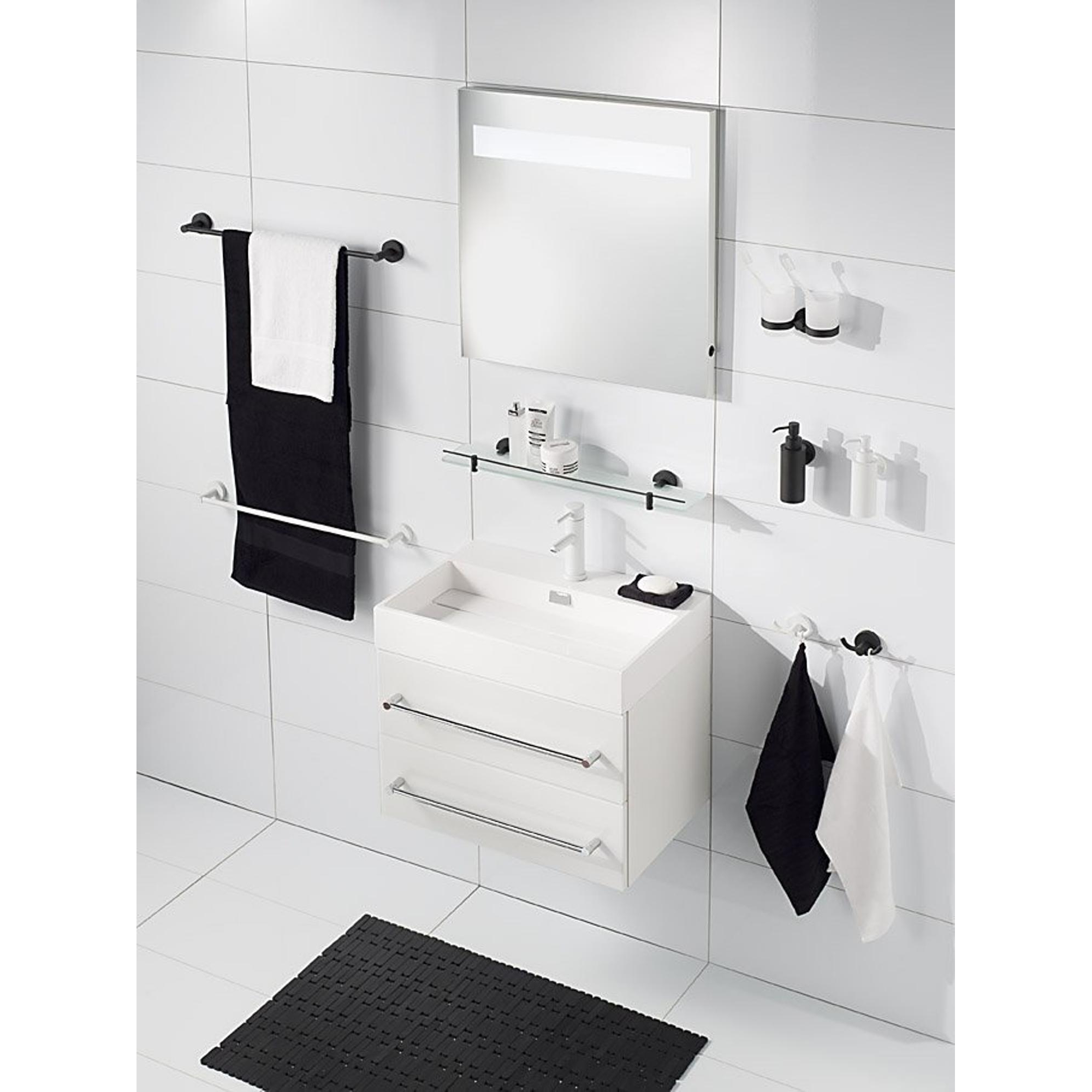 Le Haceka Kosmos porte-gobelets double dégage une élégance intemporelle qui s'harmonise aisément avec différents styles de salle de bains. Le verre blanc mat confère un aspect luxueux et ajoute une touche de raffinement à la pièce. Ce porte-gobelets n'est pas seulement fonctionnel, mais également un élément décoratif qui apporte une véritable amélioration à votre salle de bains.
