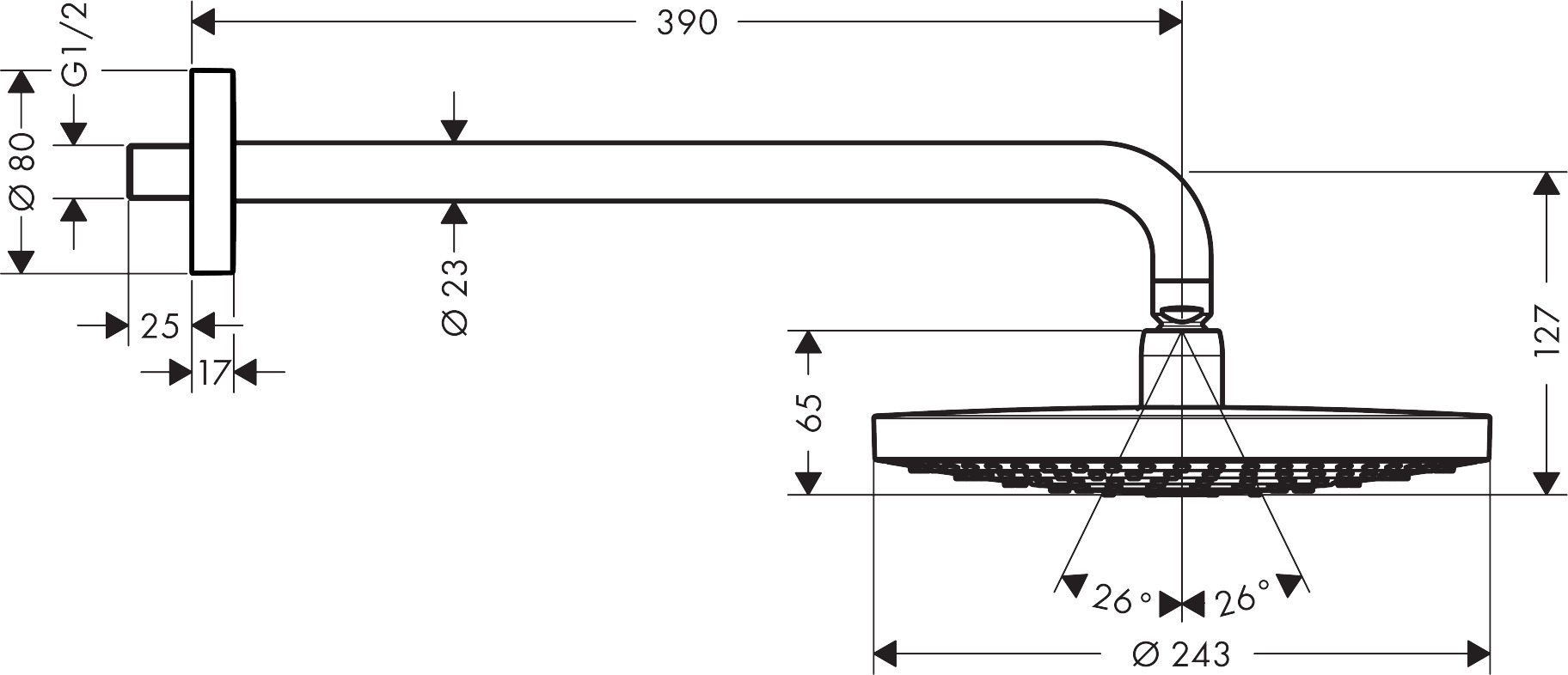 - Débit d’eau : max. 17 l/min en RainAir et 17,5 l/min en Rain (3 bar)