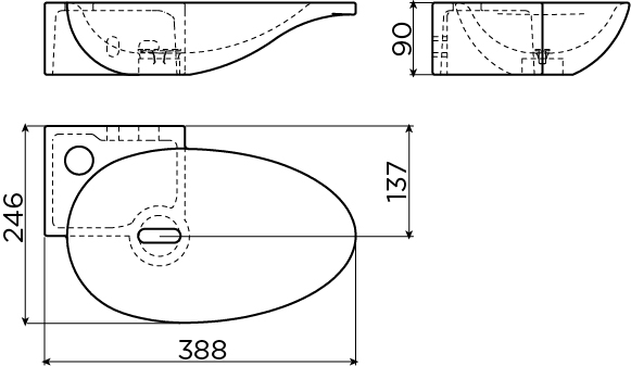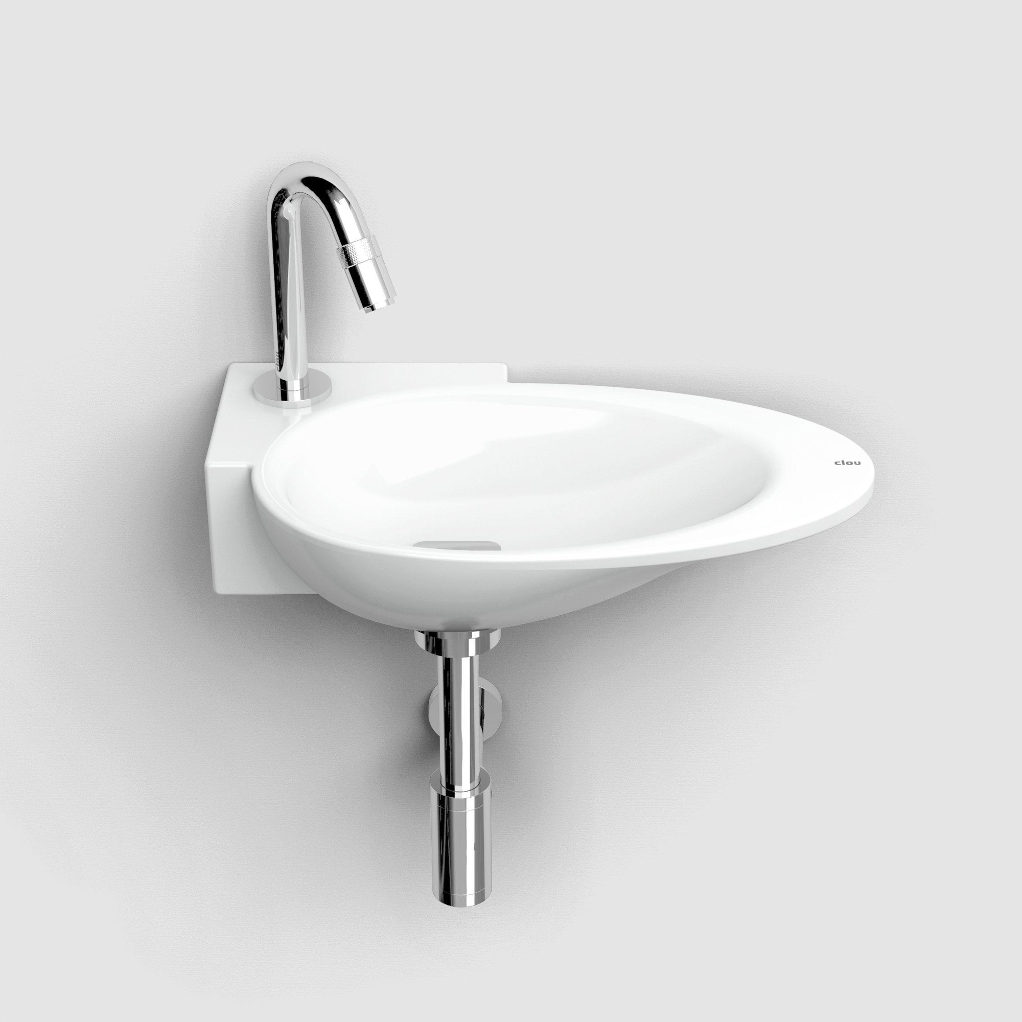 Avec une largeur de 38,8 cm et une profondeur de seulement 24,6 cm, vous utilisez l’espace disponible de manière particulièrement efficace. La combinaison d’un montage en angle et d’un design étroit permet de conserver un confort de mouvement, même dans les plus petites toilettes. La cuve ovale offre une profondeur suffisante pour limiter les éclaboussures, tandis que le plateau au niveau du trou de robinet offre de la place pour un distributeur de savon ou du savon pour les mains. Vous créez ainsi, avec un seul élément compact, un lave-mains complet et fonctionnel. Grâce au robinet placé à gauche, la ligne de passage reste dégagée et l’espace paraît visuellement plus grand et plus calme.