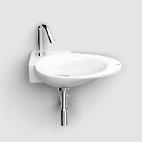 - Lave-mains compact de 38,8x24,6 cm, idéal pour les petits WC et les installations d’angle.