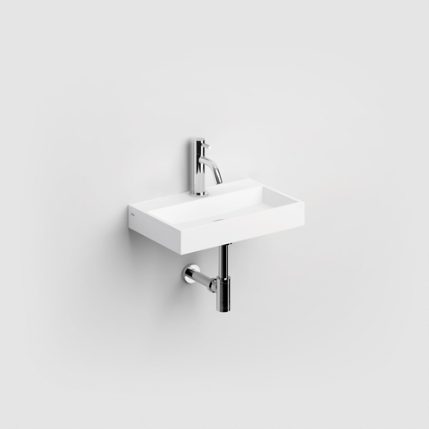 Le trou de robinet est déjà pré-percé au centre, ce qui rend le montage beaucoup plus simple. Concrètement, cela signifie que vous pouvez choisir très précisément : un robinet de lave-mains compact monotrou sur le plateau ou au contraire un élégant robinet mural au-dessus du lave-mains. Si vous optez pour un robinet mural, la surface reste dégagée et le nettoyage est encore plus facile. Le lave-mains est conçu pour des solutions d’évacuation standard, ce qui vous permet de sélectionner facilement une bonde et un siphon assortis qui s’harmonisent avec le reste de votre sanitaire, que vous choisissiez le chrome, le noir ou le métal brossé.