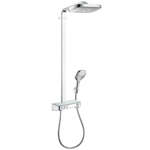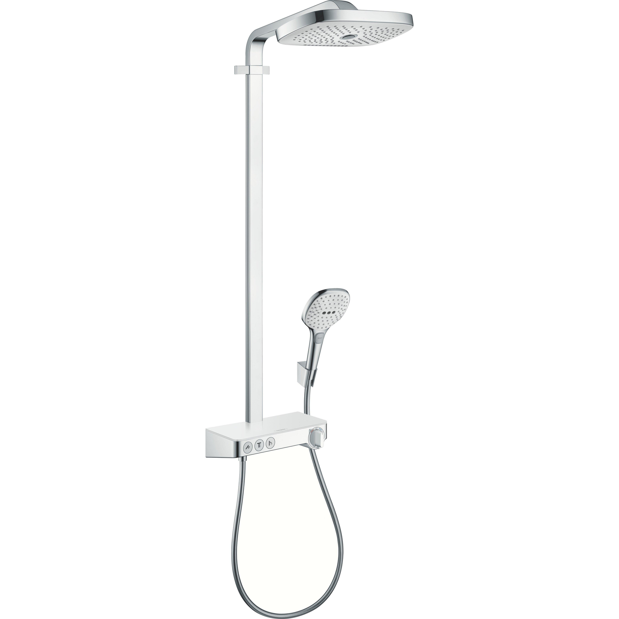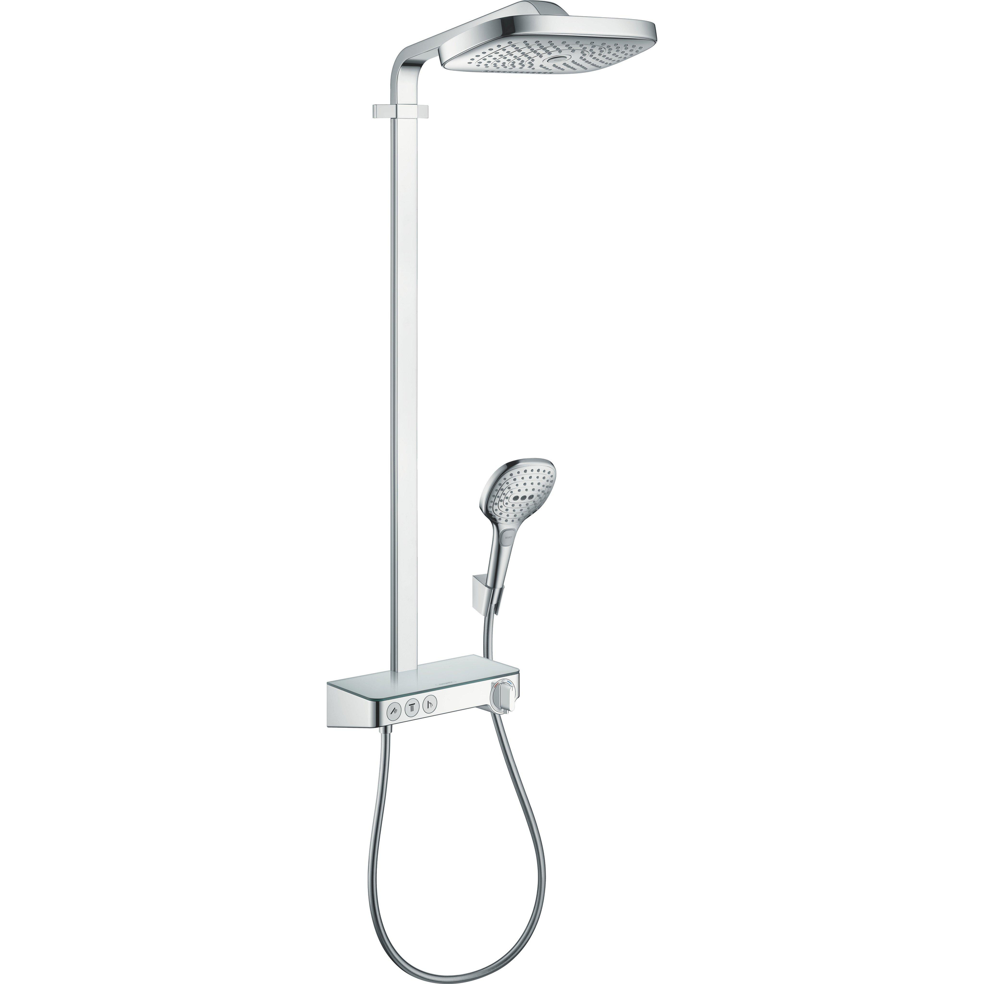 Hansgrohe Raindance Select E300 colonne de douche : avec tablette de douche 300 mitigeur thermostatique apparent avec douchette 3 jets et pomme de douche 3 jets chrome