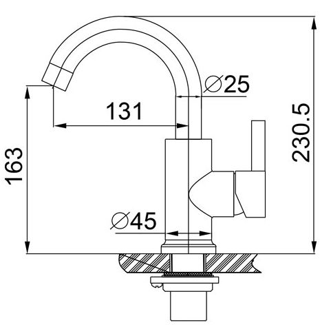 | Saillie de robinet | 13.1 cm | |