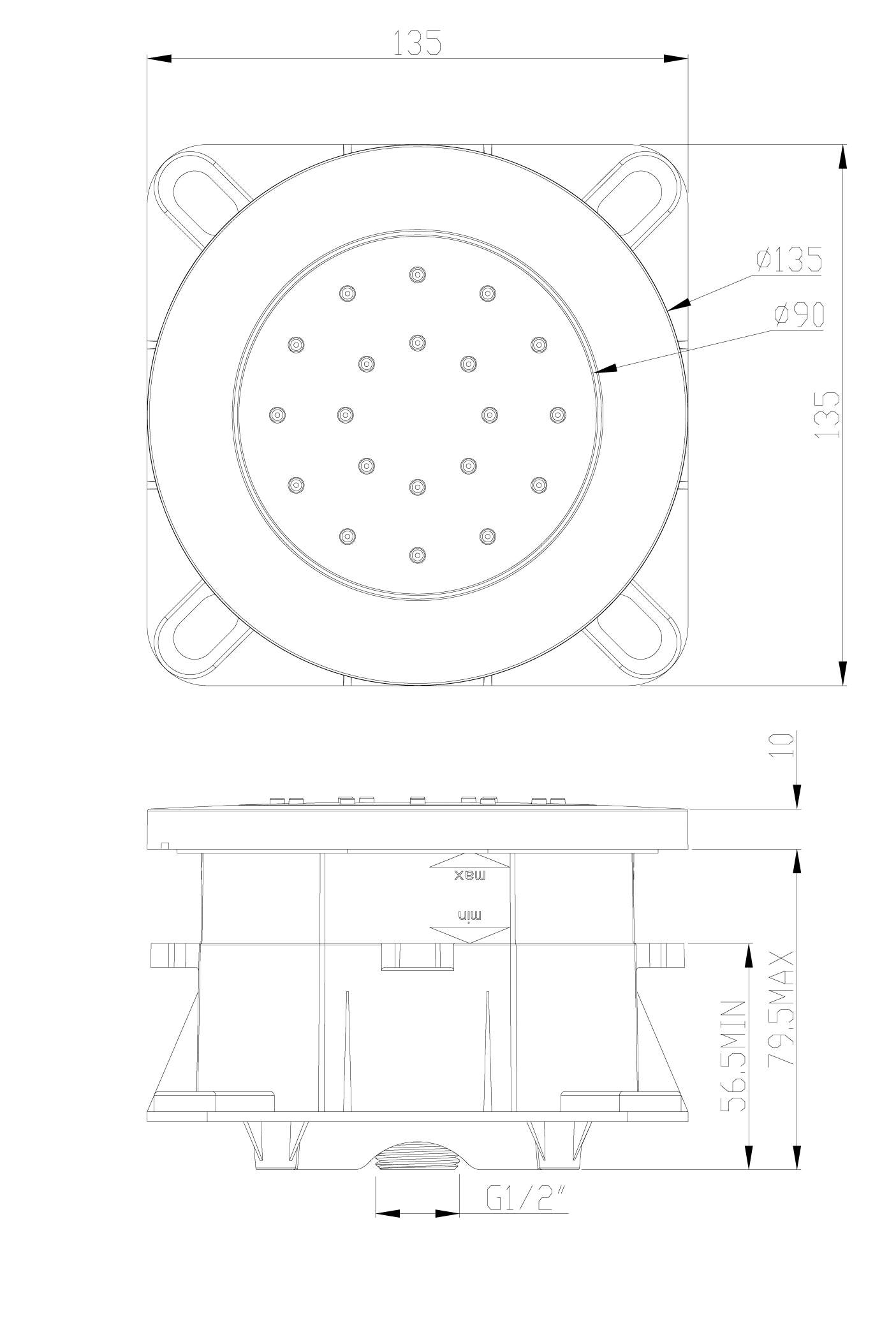 Wiesbaden encastrable douche latérale réglable rond 135mm ABS chr
