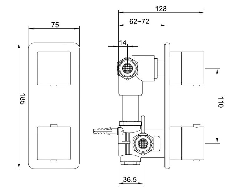 Xellanz Rombo Mitigeur douche encastrable 2 voies carré chrome