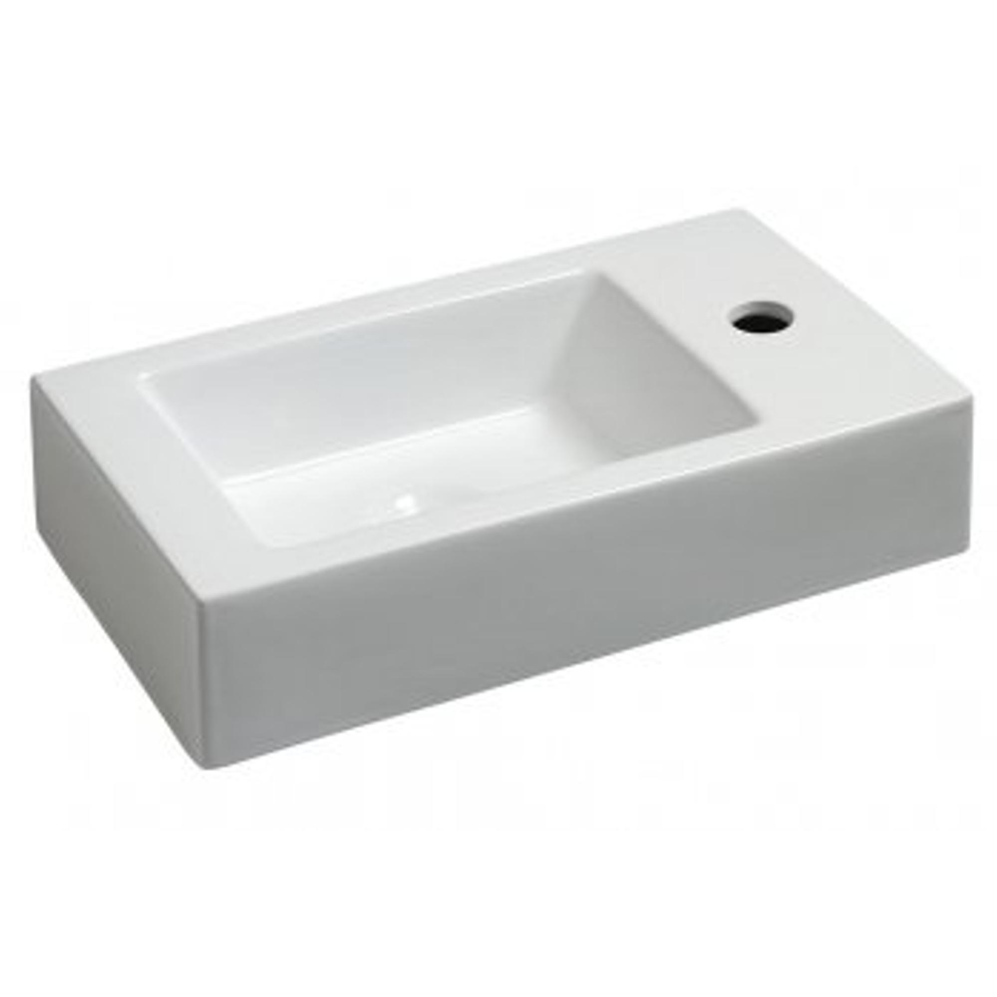 Ce lavabo compact est idéal pour ceux qui recherchent une solution élégante et pratique pour un petit cabinet de toilette ou un coin de salle de bains étroit. Grâce à son design rectangulaire avec un trou de robinet à droite, ce lavabo s'adapte parfaitement aux situations où l'espace est limité, sans compromettre la facilité d'utilisation. La céramique brillante offre un aspect frais et intemporel qui s'harmonise aisément avec divers styles d'intérieur, du moderne au classique. Que vous souhaitiez aménager un second WC ou une zone de lavage compacte dans un espace plus restreint, ce lavabo offre une combinaison intelligente de fonctionnalité et d'élégance.Design compact et gain de place