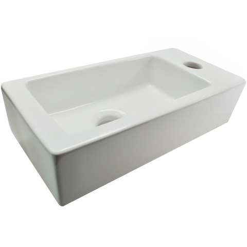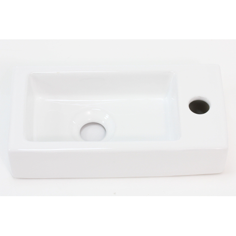 Avec ses dimensions modestes, ce lavabo est parfait pour les endroits où chaque centimètre compte. Que vous ayez un petit WC ou une salle de bains étroite, ce modèle offre un point d’eau fonctionnel sans prendre de place. Le design rectangulaire avec un trou de robinet à droite facilite également la combinaison du lavabo avec les canalisations et robinets existants. Vous n’avez donc pas besoin de rénover ou de modifier l’espace, tout en ajoutant un élément élégant et pratique.