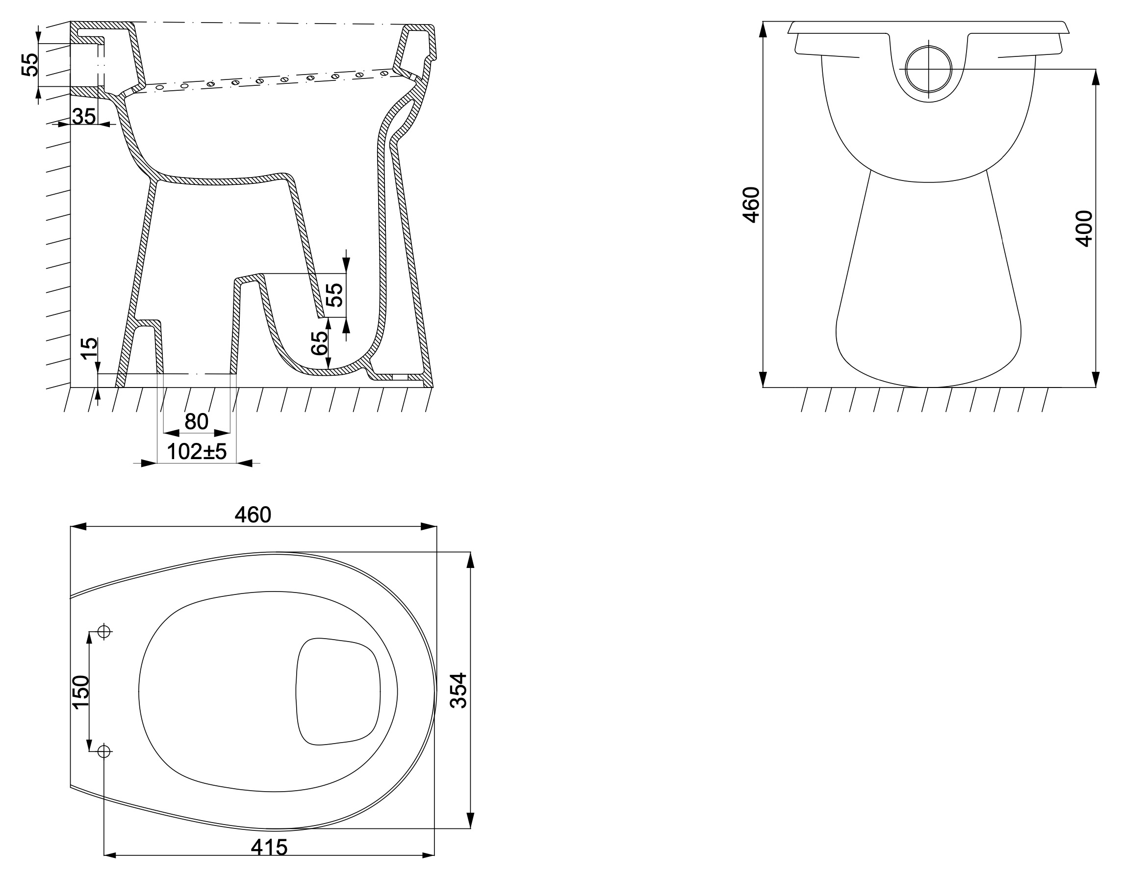 Grâce à ses 4 trous de fixation, cette cuvette offre une installation stable et sécurisée. Avec une sortie de diamètre 102 mm, elle est compatible avec les systèmes d'évacuation standards, assurant une intégration facile et rapide dans votre salle de bains.