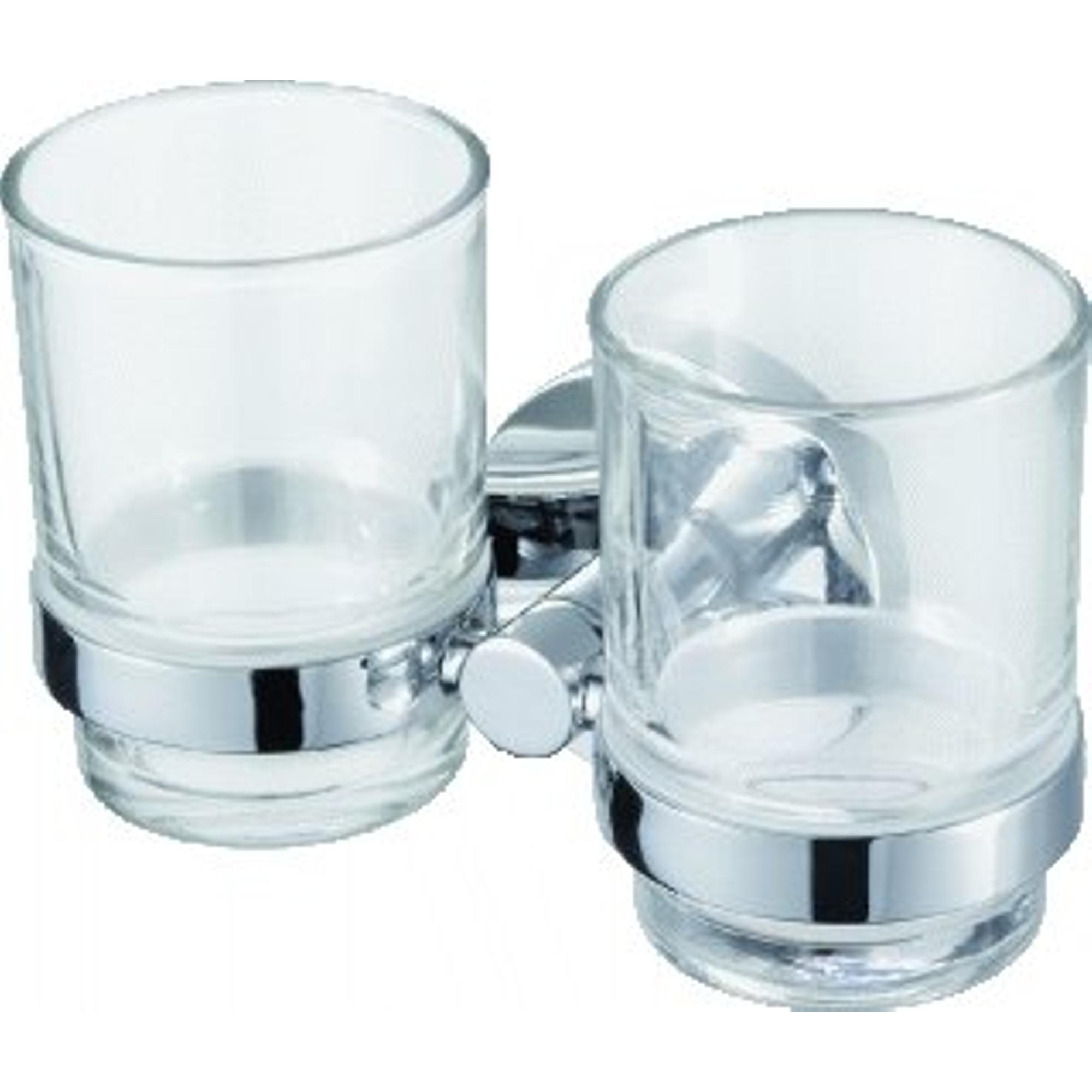 Support élégant et solide pour deux verres en verre clair. Grâce à l'anneau en caoutchouc noir, les verres sont maintenus fermement en place. Le support se fixe rapidement et facilement au mur.