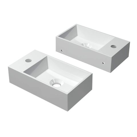INK Contra lave-mains 40x10x22cm carré avec trou de robinetterie à gauche polystone blanc brillant