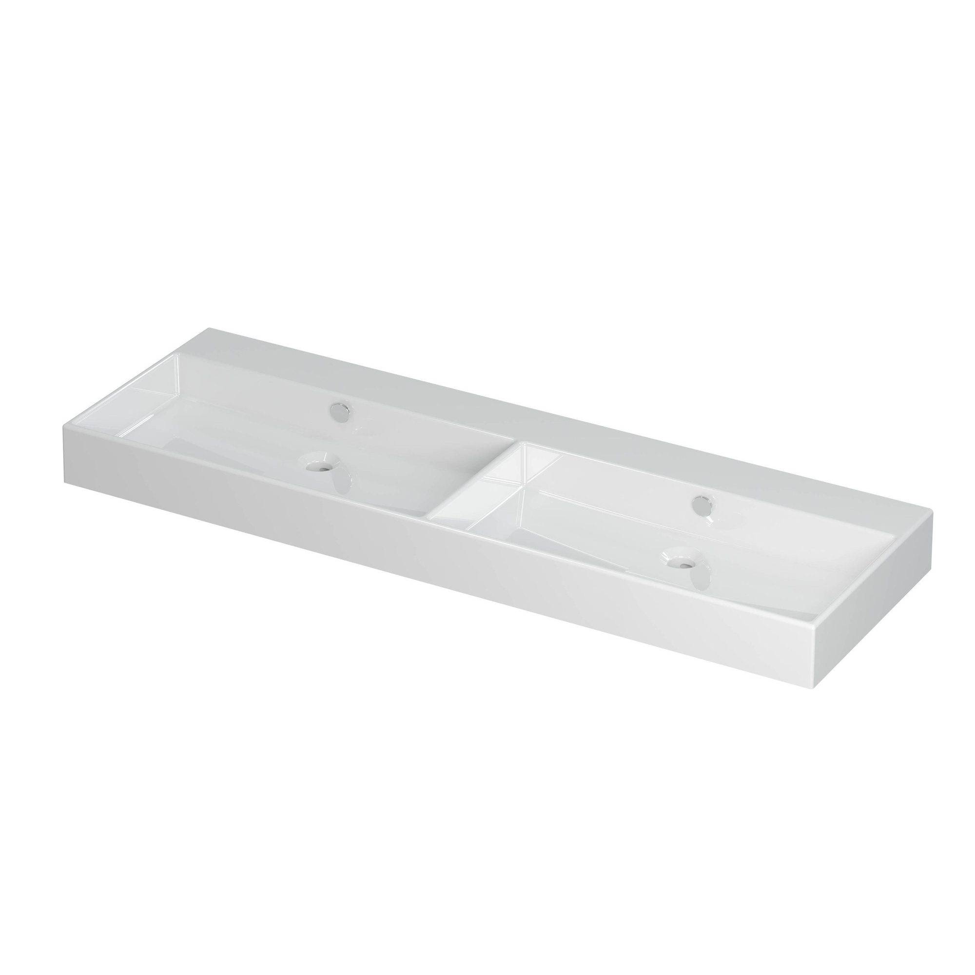 INK Unlimited lavabo - 140x45x11cm - 2 vasques - 0 trous de robinet - porcelaine blanc brillant