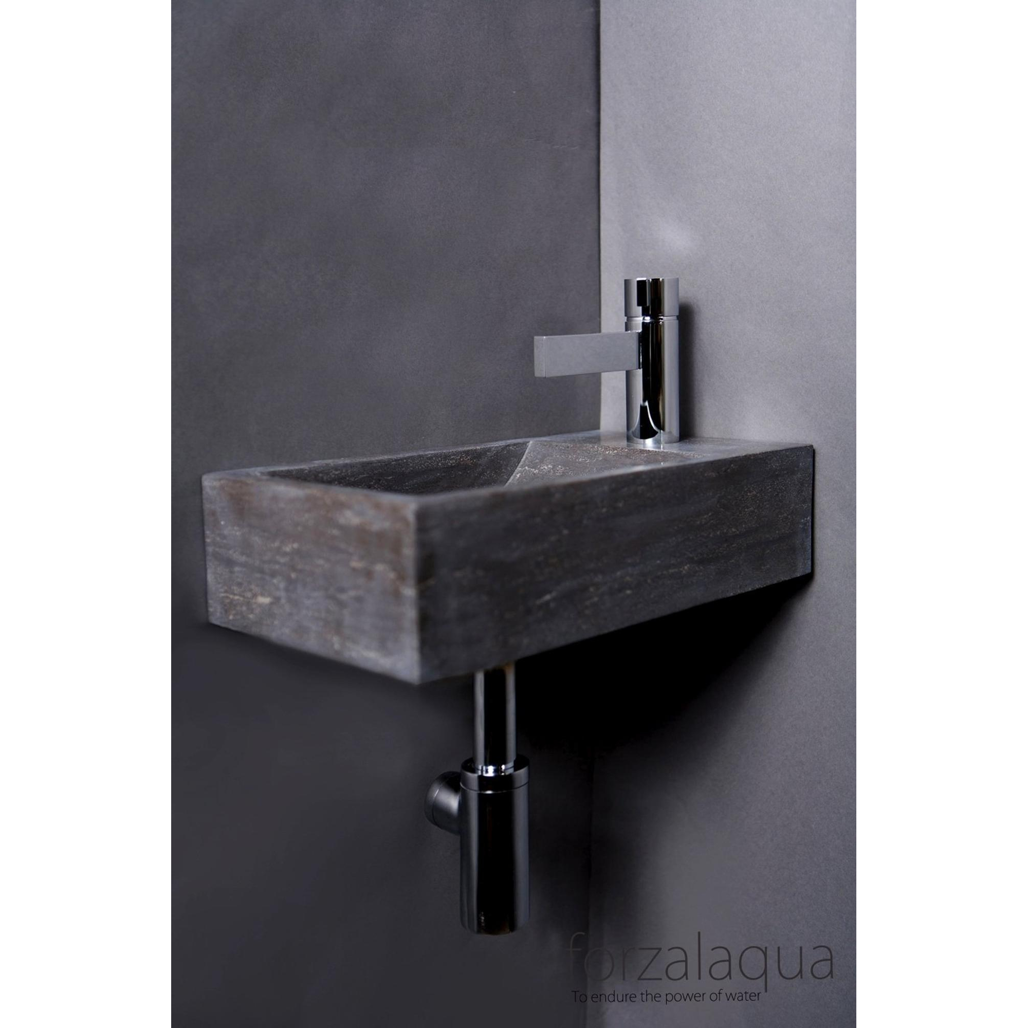 Forzalaqua Venetia lavabo de WC 40x22x10cm cuve à gauche 1 trou de robinet à droite Pierre naturelle Pierre bleue adoucie