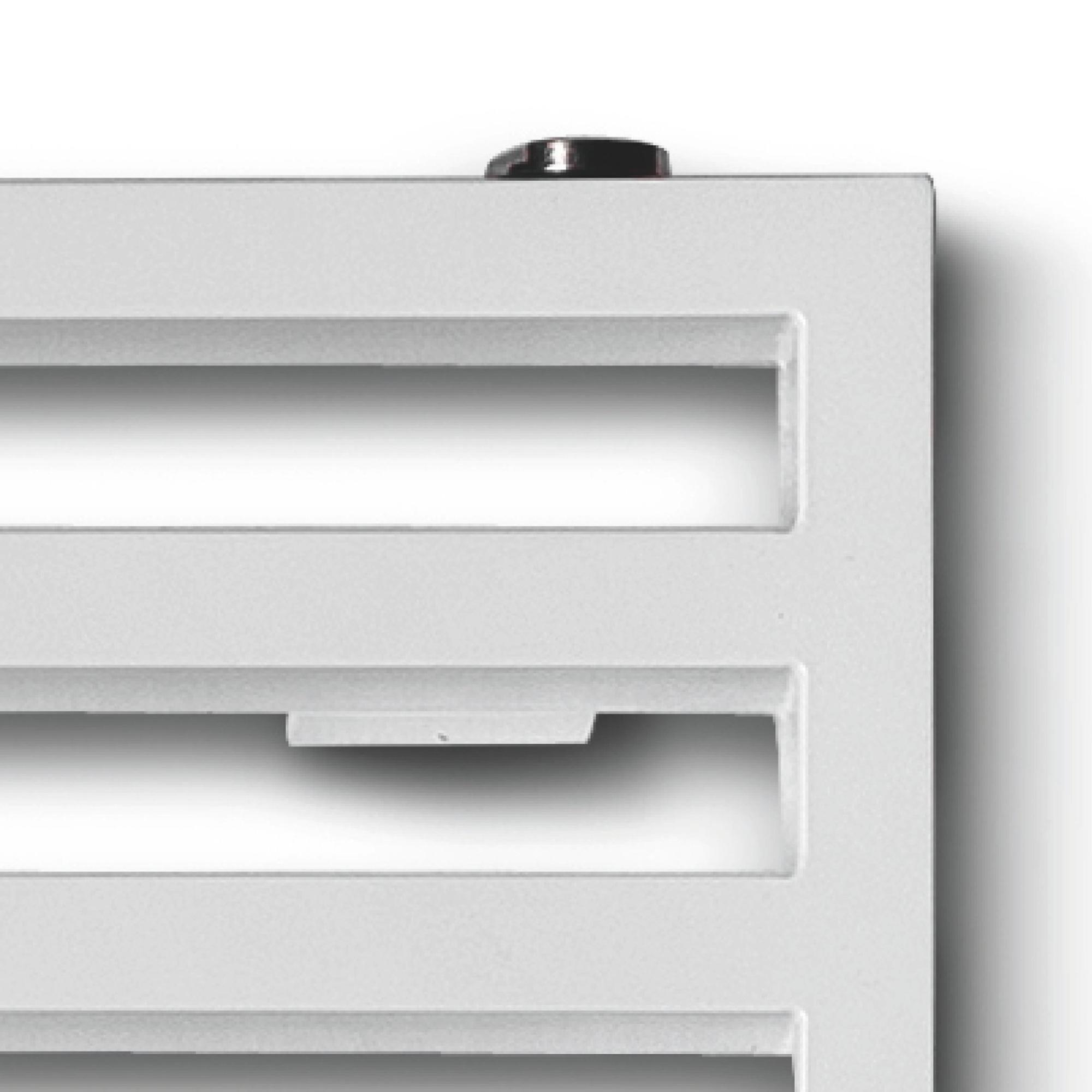 - Fixation minimaliste dans la couleur du radiateur pour un ensemble discret et abouti sur le mur.