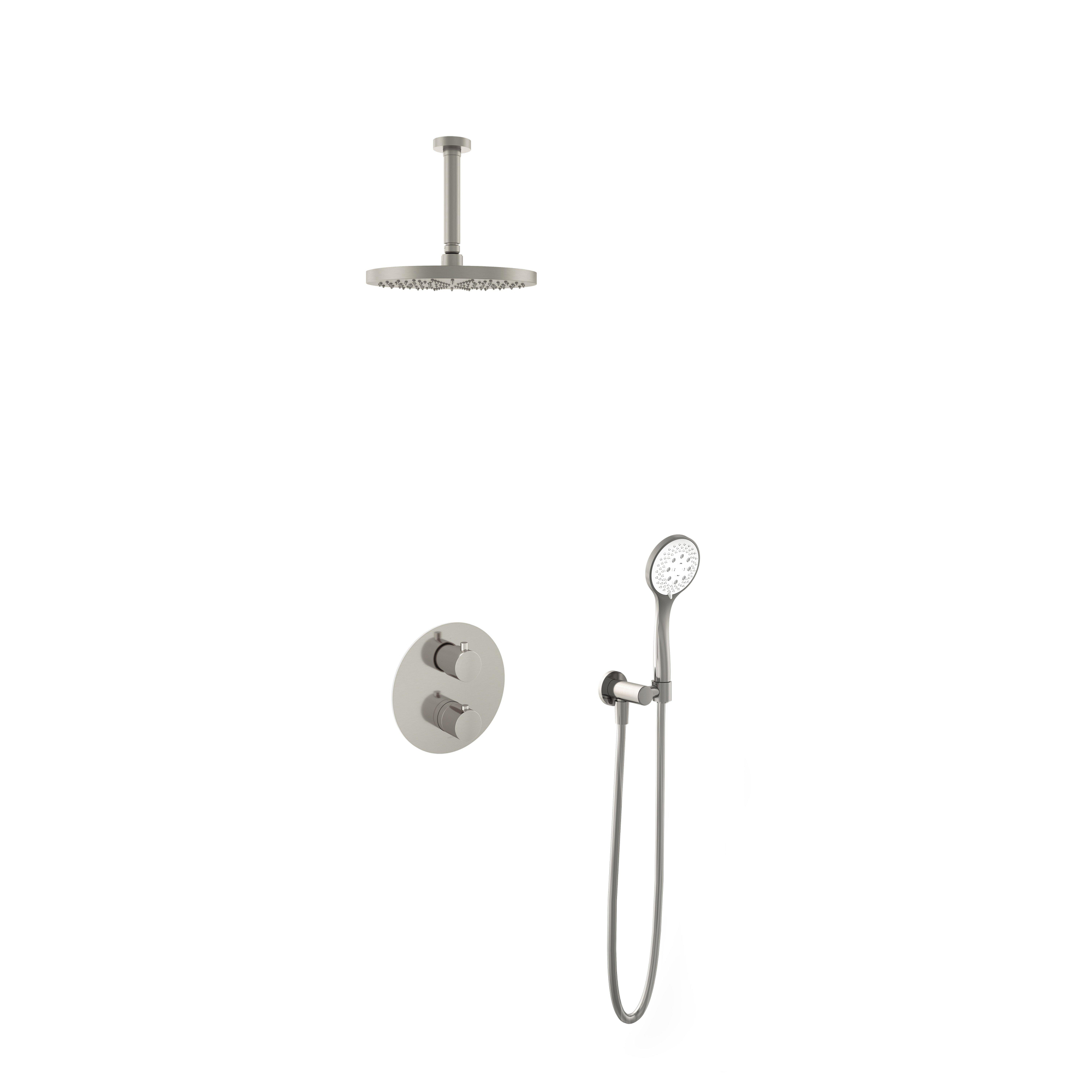 Hotbath Buddy Ensemble de douche de pluie IBS - bras de plafond 15 cm - pomme de douche ronde 25 cm - douchette 3 jets - nickel brossé